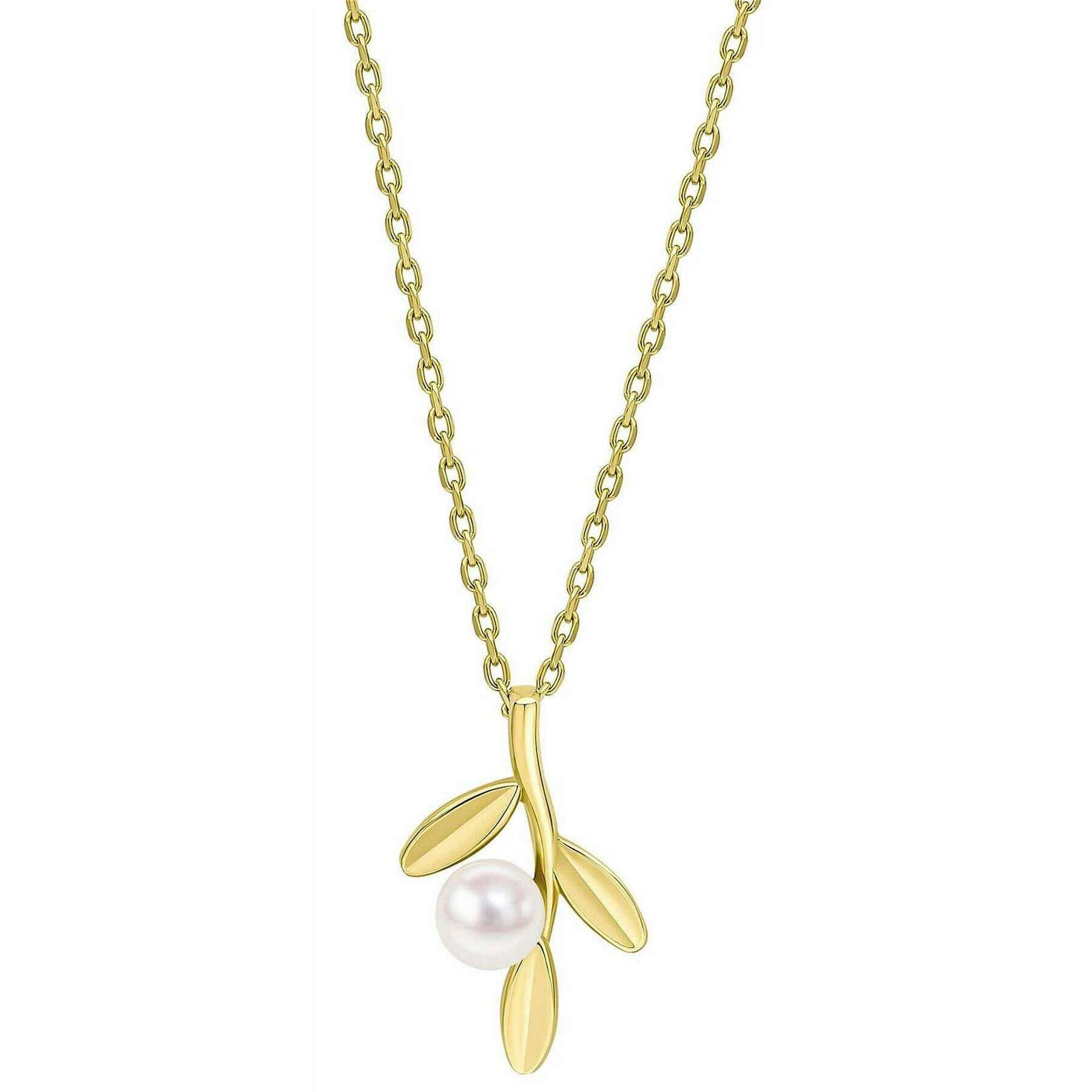 Elements Gold Willow Pearl 9ct Gold Necklace - Gold/White