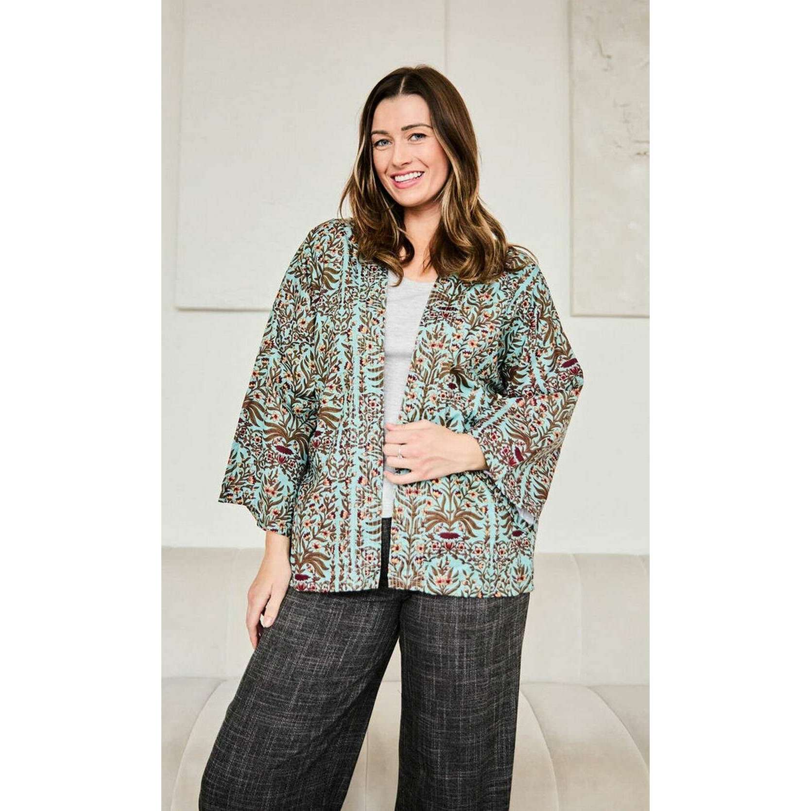 Using blue 100% natural cotton, this serendipity short kimono by Elie Beaumont is perfect for women and a must have. All the jackets come complete with elie beaumont packaging. The Elie Beaumont Serendipity Short Kimono - Light Blue Baroque will provide you with a real standout look that you are sure to love! The bold colours and the intricate design makes this kimono jacket really standout. This kimono is fully lined, breathable and has length sleeves.