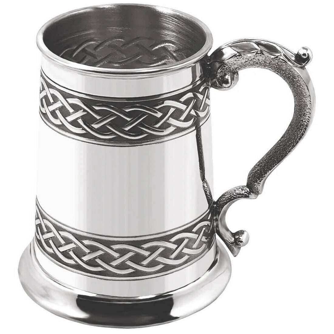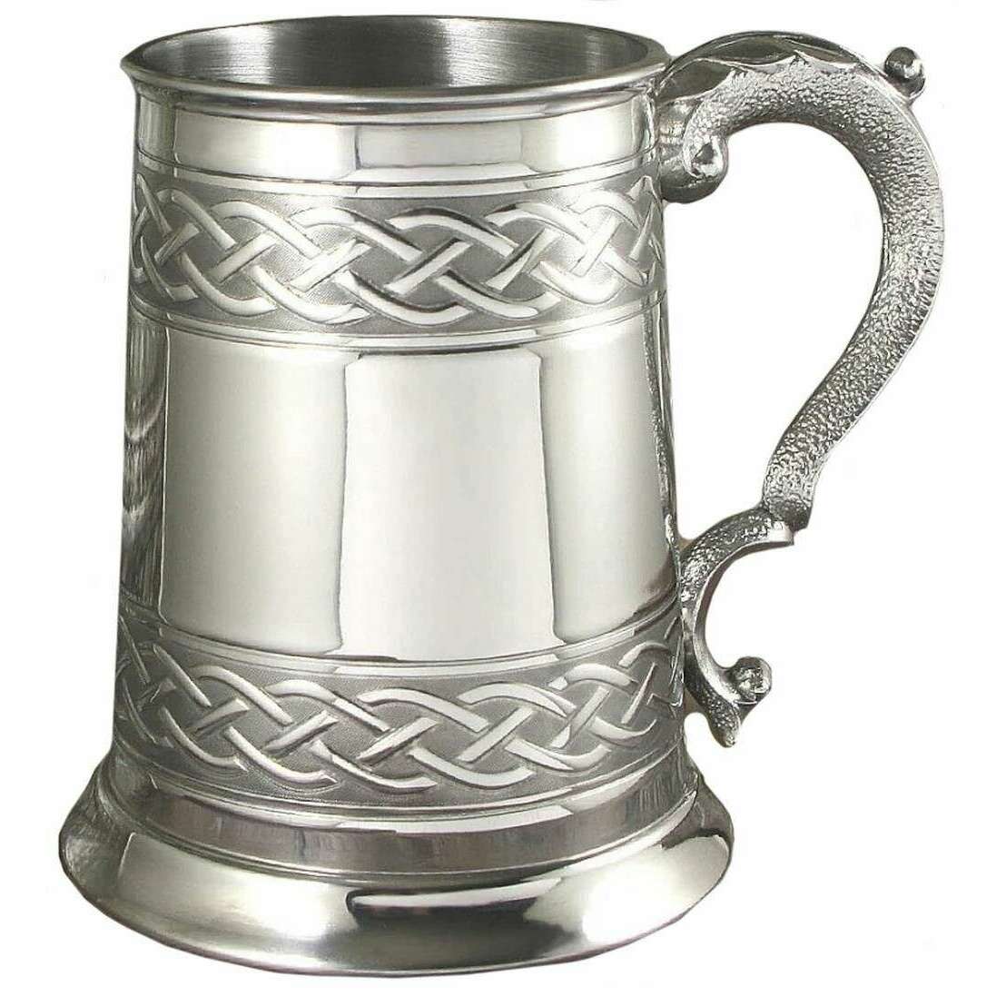 English Pewter Company 1pt Embossed Celtic Band Tankard - Silver