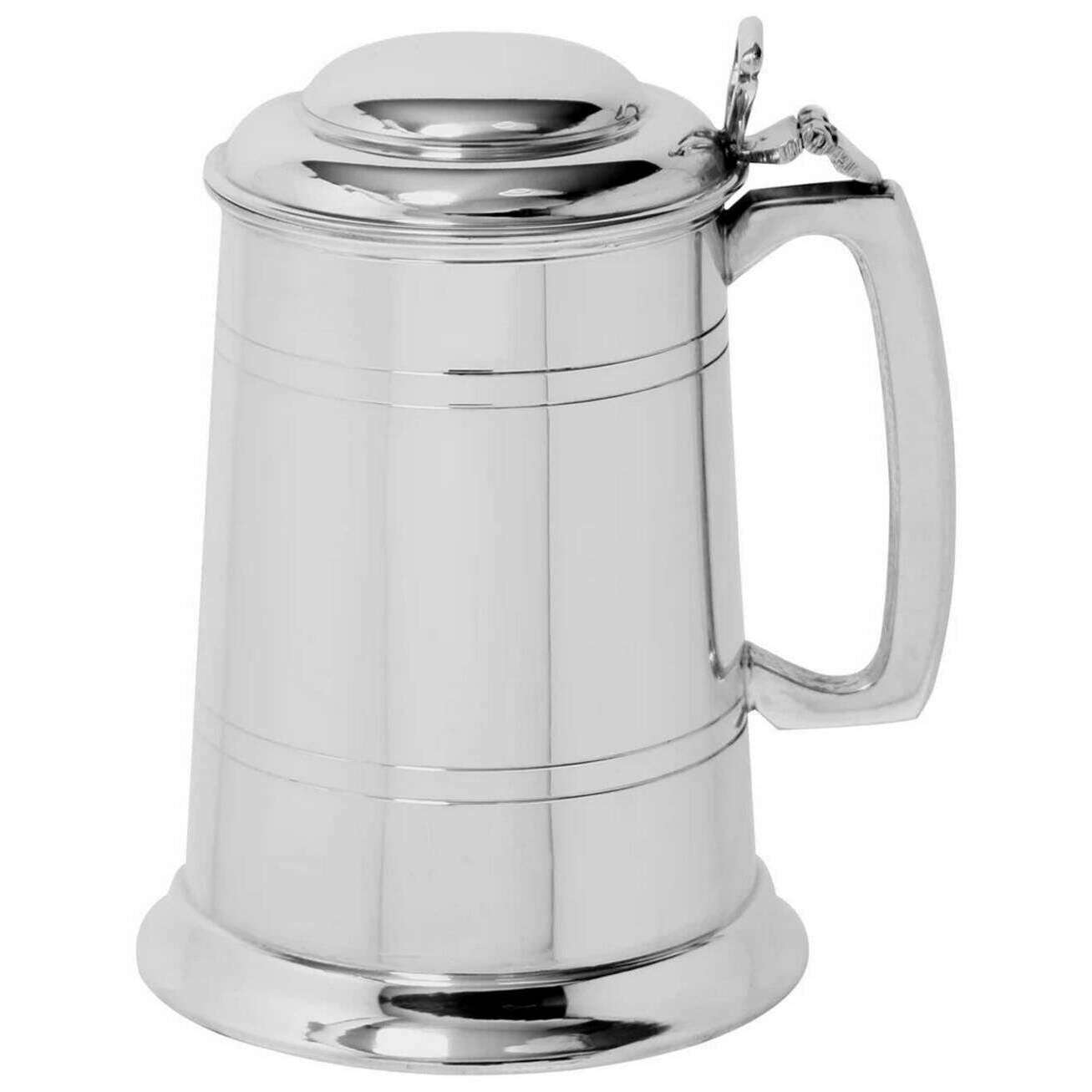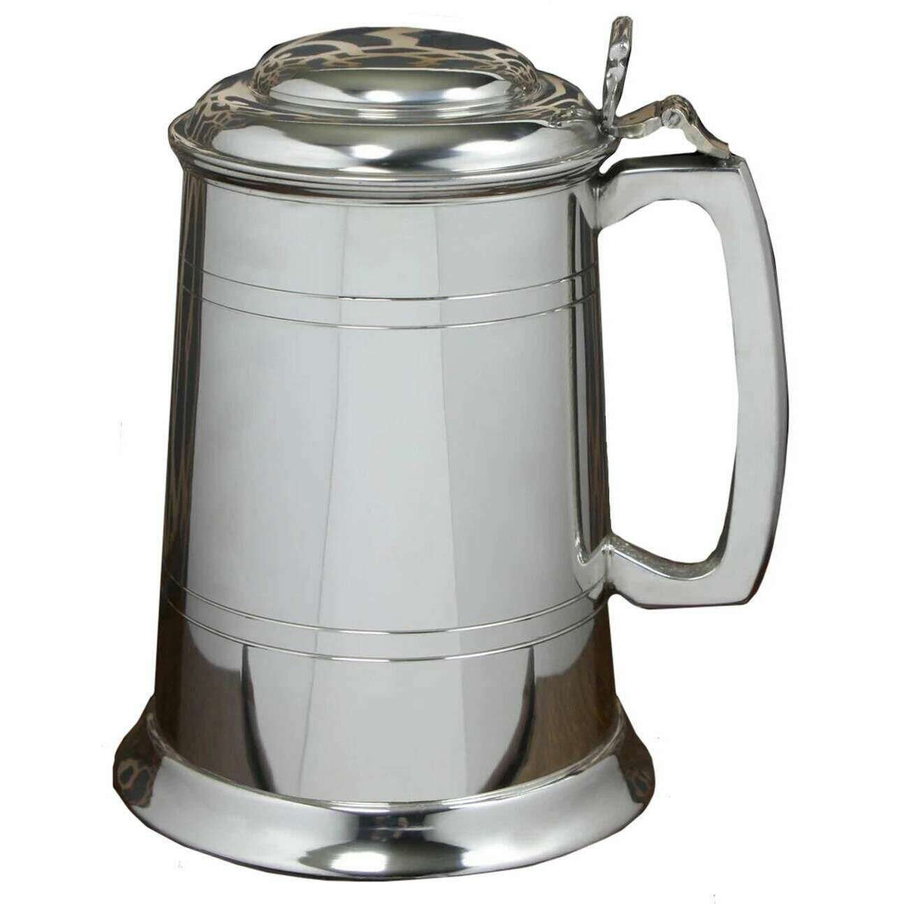 English Pewter Company 1pt Straight Lid Tankard - Silver