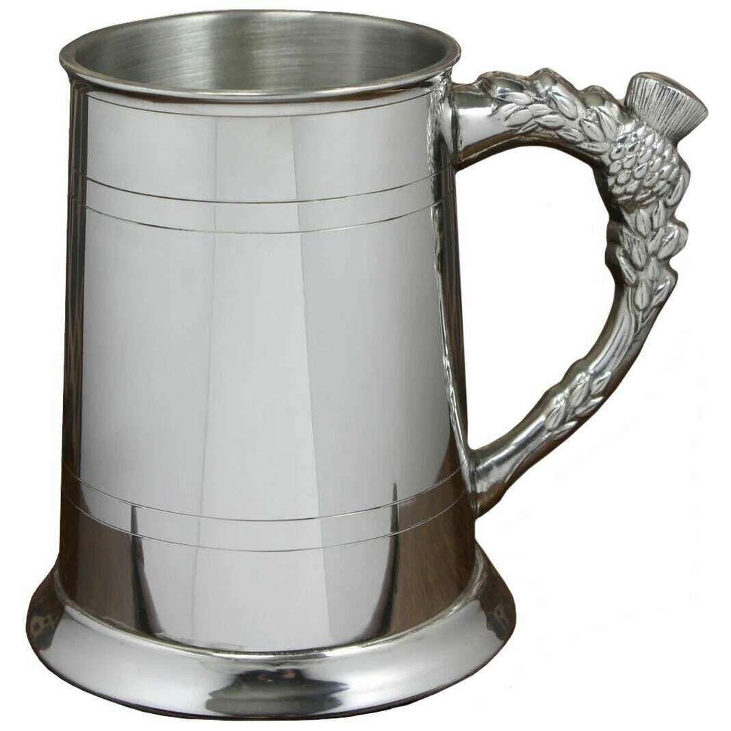 Using silver pewter, this 1pt thistle tankard by English Pewter Company is perfect for men or women and a must have. It measures 12.75cm(height). All the drinkware and glassware comes complete in a english pewter company gift box. The English Pewter Company 1pt Thistle Tankard - Silver will make the perfect gift for someone special or to add to your drinkware. It features a sturdy handle with an intricate design and offer classic appeal with its weighty finish. Fill it up with your favourite ale or craft beer and raise a toast for the special occasion. The high quality material ensures it gives off timeless charm.