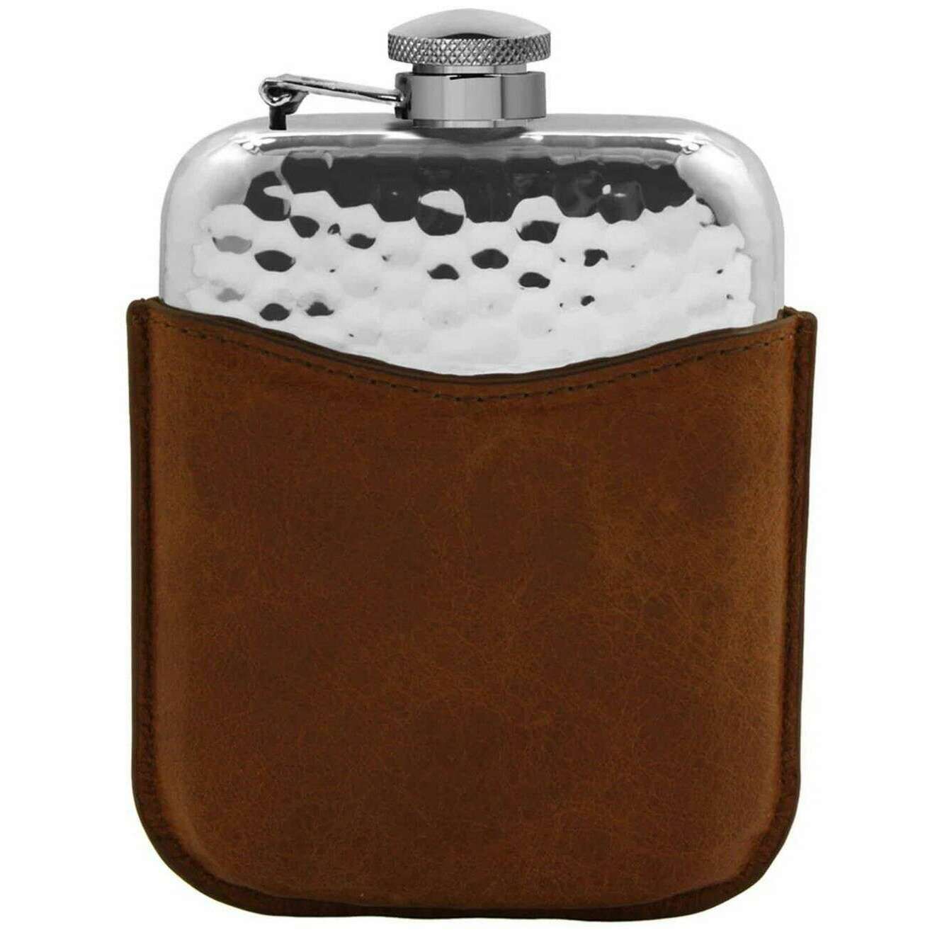English Pewter Company 6oz Captive Top Hammered Purse Flask and Pouch - Silver/Brown