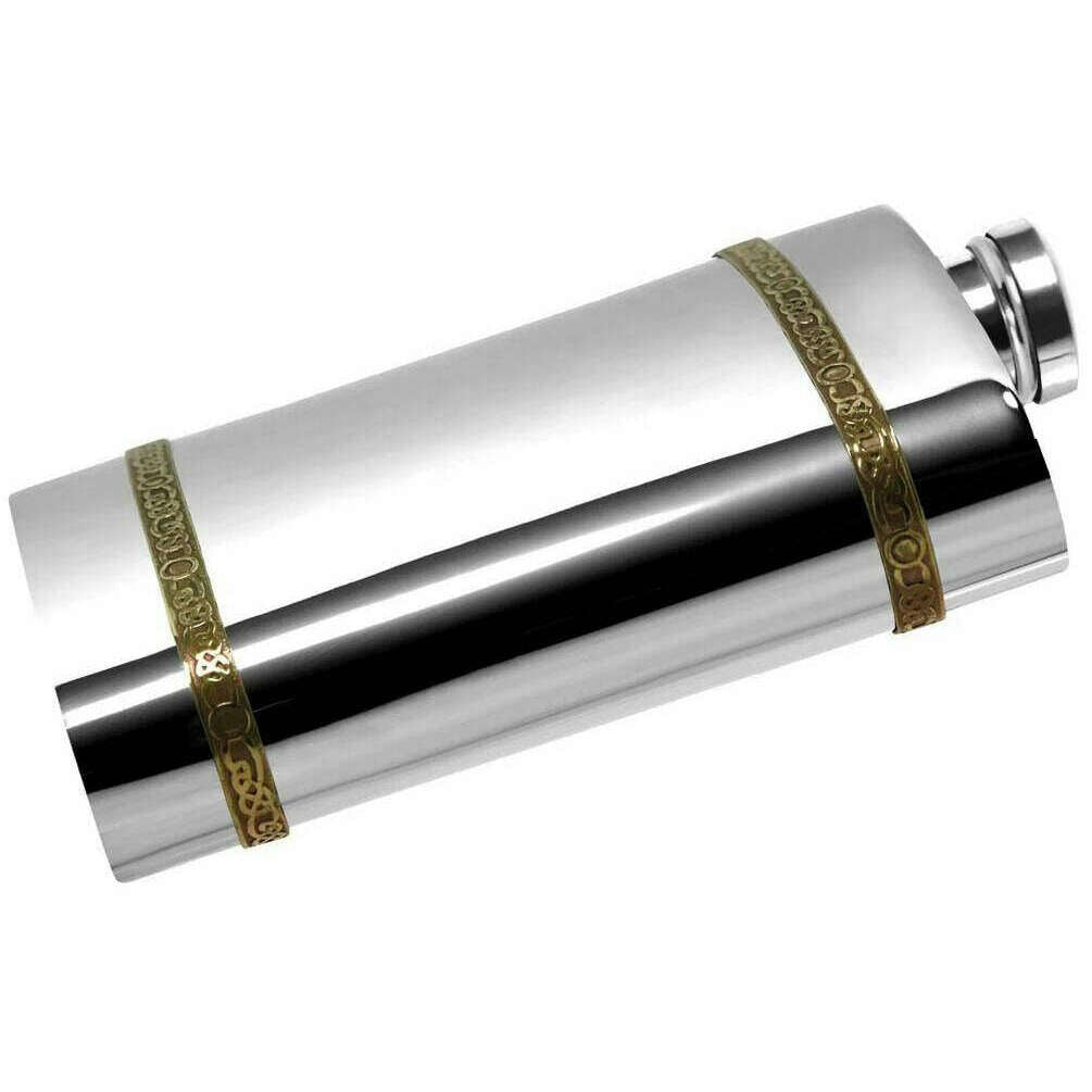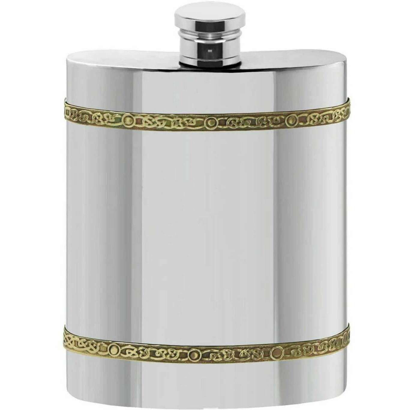 English Pewter Company 6oz Celtic Brass Band Flask - Silver/Gold