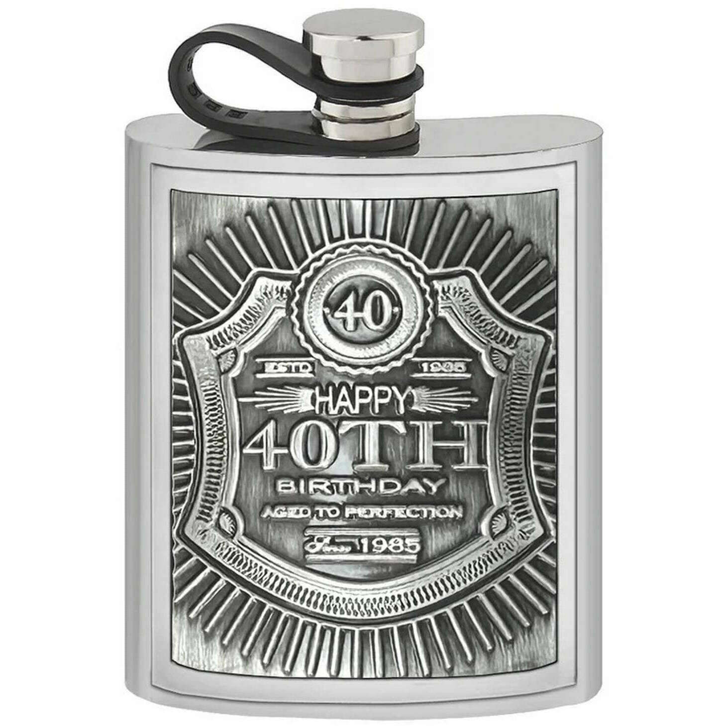English Pewter Company 6oz Embossed 40th Pewter Hip Flask - Silver