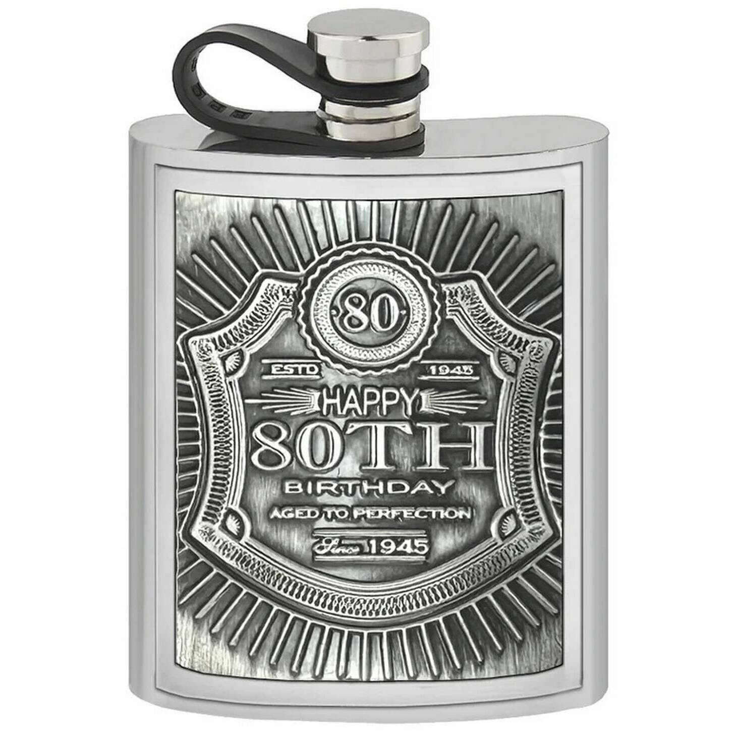 English Pewter Company 6oz Embossed 80th Pewter Hip Flask - Silver