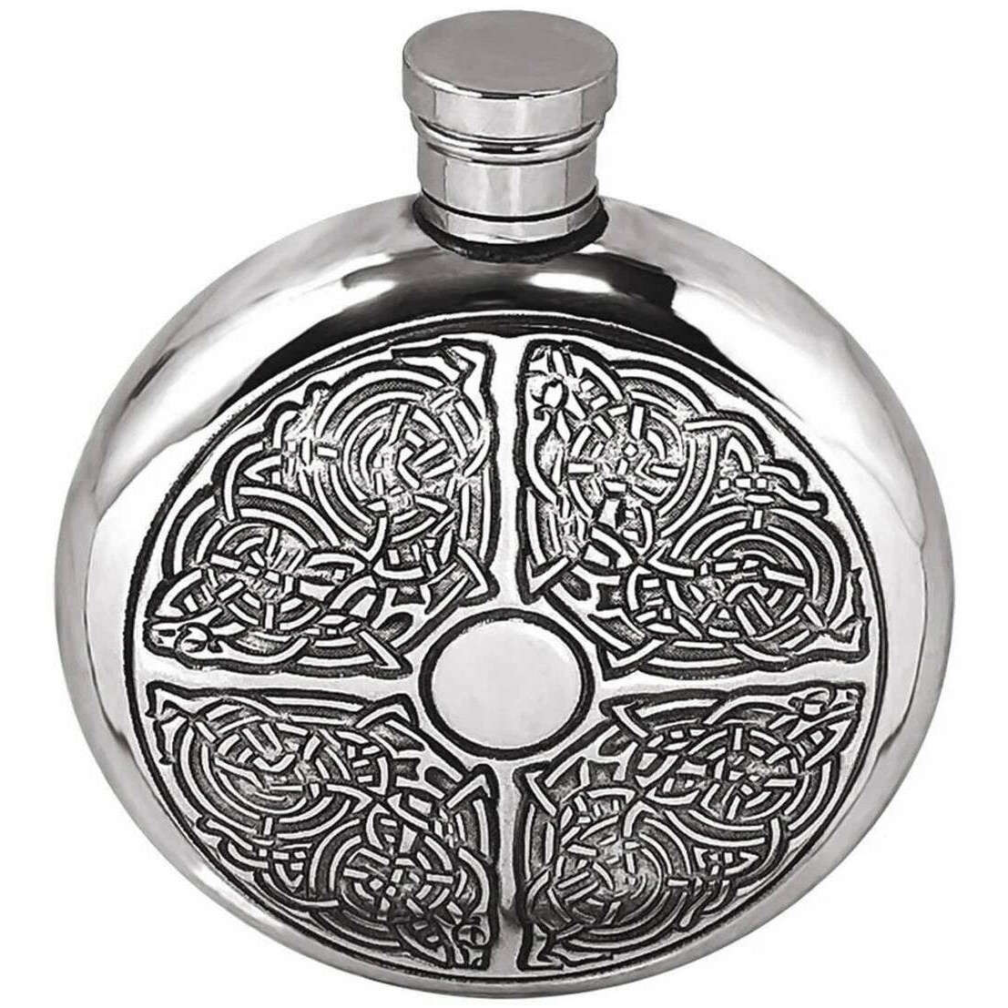 English Pewter Company 6oz Round Celtic Knot Flask - Silver