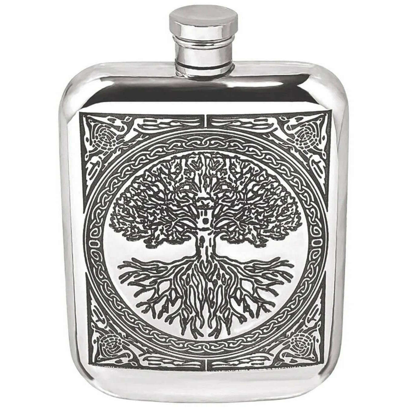 Introducing this unisex 6oz tree of life purse flask by English Pewter Company, it is manufactured from pewter in a silver colour. It measures 13cm(height). All the hip flasks come complete in a english pewter company gift box. The English Pewter Company 6oz Tree of Life Purse Flask - Silver has been crafted to an exquisite standard, ensuring it doesn't tarnish over time, giving you a long-term companion. Perfect for storing your favourite drink and allowing you to sip it on the go, keeping it fresh so that every sip is just as good as the last. It features a stunningly intricate Tree of Life design engraved on the front making it a must have for your collection.