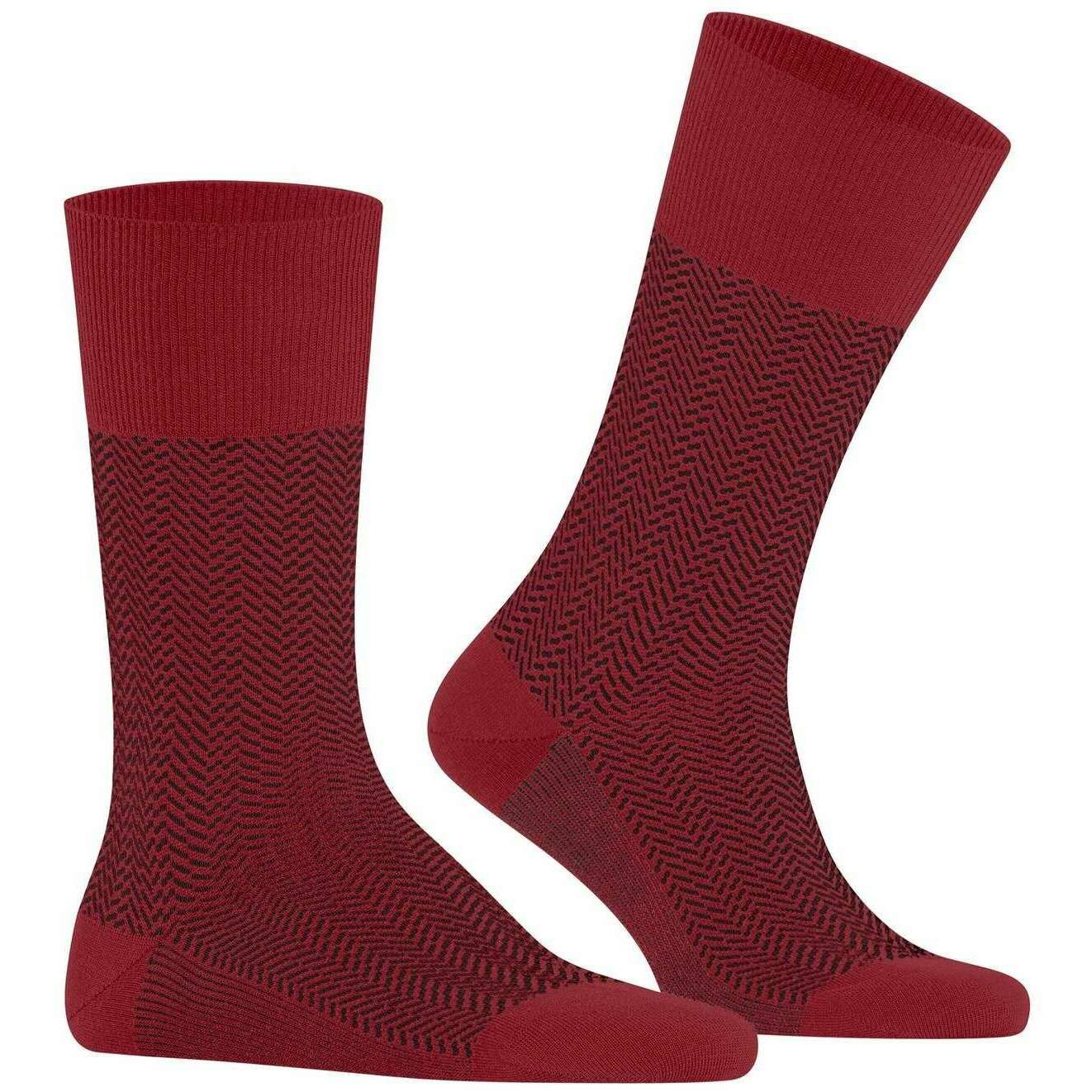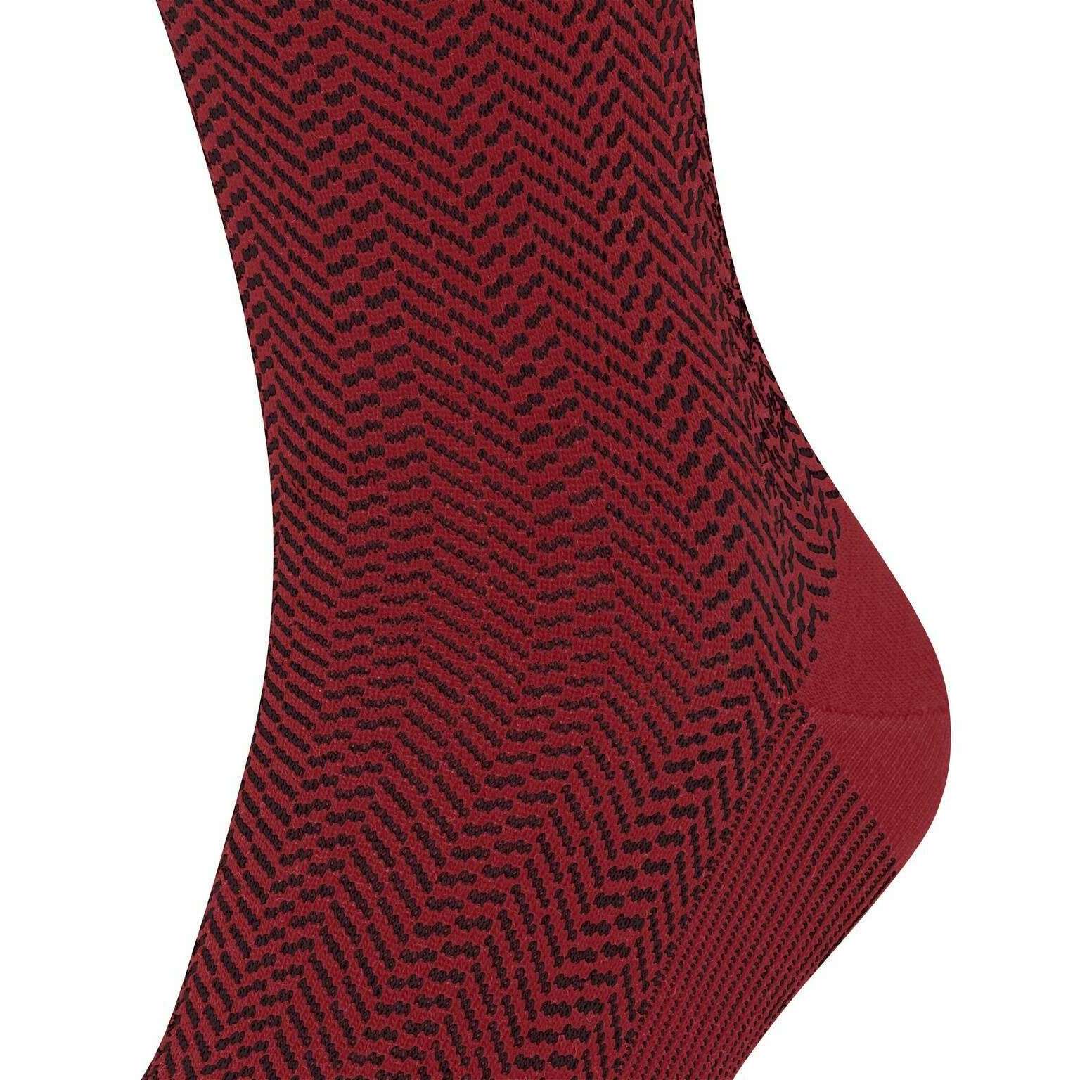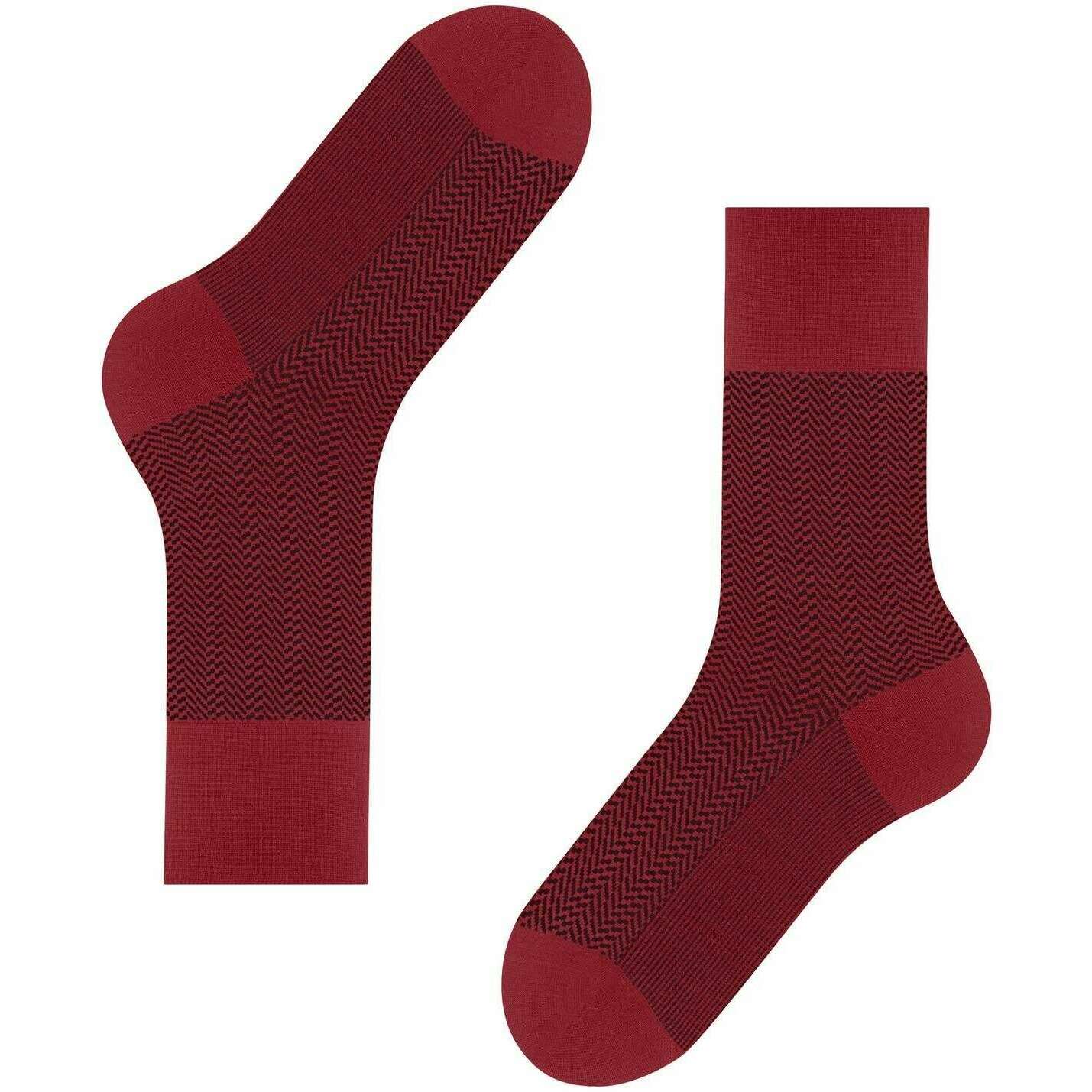 These men's airport herringstripe socks have been made from 62% virgin wool, 24% polyamide, 13% cotton and 1% elastane, featured in a red colour and are from the brand Falke. Also the ingle red socks are designed in a herringbone pattern, It is recommended to wash at 30 degrees to keep these socks in good condition. All the socks come complete with falke tags. The Falke Airport Herringstripe Socks - Ingle Red are woven with the correct combination of light, climate-regulating merino wool on the outside and pleasant soft cotton on the inside. For work or leisure, these socks have extended cuffs for a wrinkle fit on the leg. The reinterpreted, two-tone herringbone pattern adds a modern and stylish touch and lends a special flair to any outfit. Stay comfortable all day with the Falke Perfect fit and enjoy wearing these socks over and over with optimal durability thanks to reinforced stress zones.