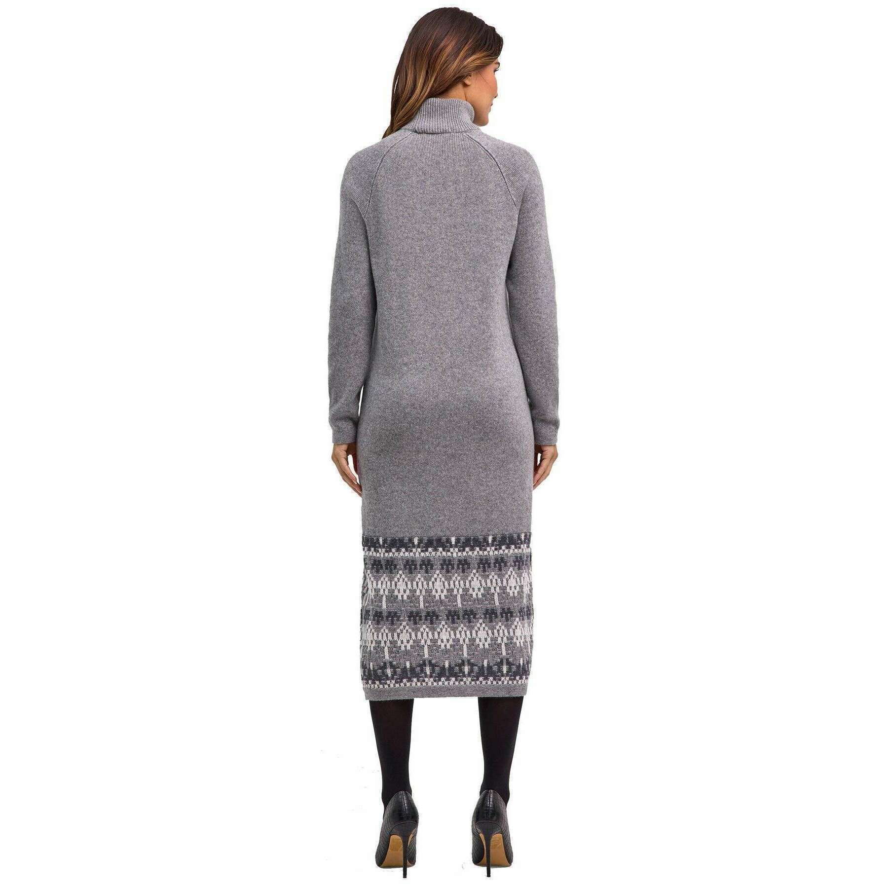 This women's jacquard midi dress by the brand Falke is made from 80% recycled virgin wool and 20% polyamide and is showcased in grey. Also the grey mel dress is designed in a unique pattern, It is recommended to machine wash at 30 degrees to keep this dress in good condition. All the dresses come complete with falke packaging. The Falke Jacquard Midi Dress - Grey Mel perfect for winter occasions to give that traditional look with the Norwegian jacquard pattern on the bottom, the roll neck and kitted material. Due to being crafted from lambswool ensures exceptional warmth and protection from the cold so you can still wear a dress whatever the weather. The raglan shoulders and regular fit allow freedom of movement to allow full comfort. Giving this dress its high-quality feel and durability is the high-quality 'fully fashioned' processing workmanship.