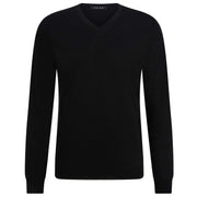 This men's merino x-fine v-neck sweater has been made from 100% virgin wool, featured in a black colour and is from the brand Falke. Also the black jumper is designed in a plain pattern, It is recommended to machine wash at 30 degrees to keep this jumper in good condition. All the jumpers come complete with falke packaging. The Falke Merino X-Fine V-Neck Sweater - Black is a must-have piece to elevate your winter wardrobe with the classic design to give that traditional touch. Crafted from mulesing-free merino wool gives a light wear perfect for mild to cold outdoor temperatures keeping you warm in the autumn and winter. Giving this sweater its fashionable look is the French shoulder seams, fine ribbed neckline and elasticated ribbed cuffs on the trunk and sleeves. The high-quality 'fully fashioned' processing gives an exclusive feel that will be enjoyed and will stay this way for many years to come.