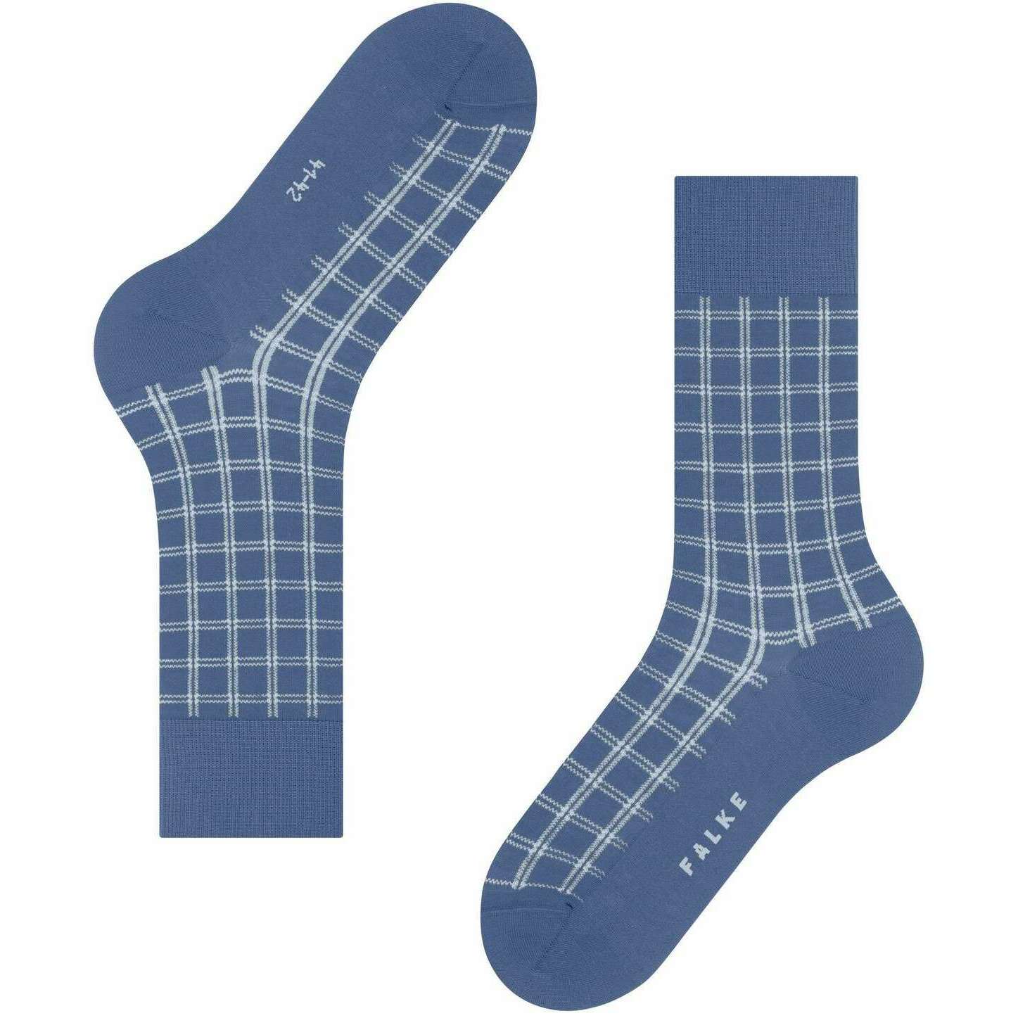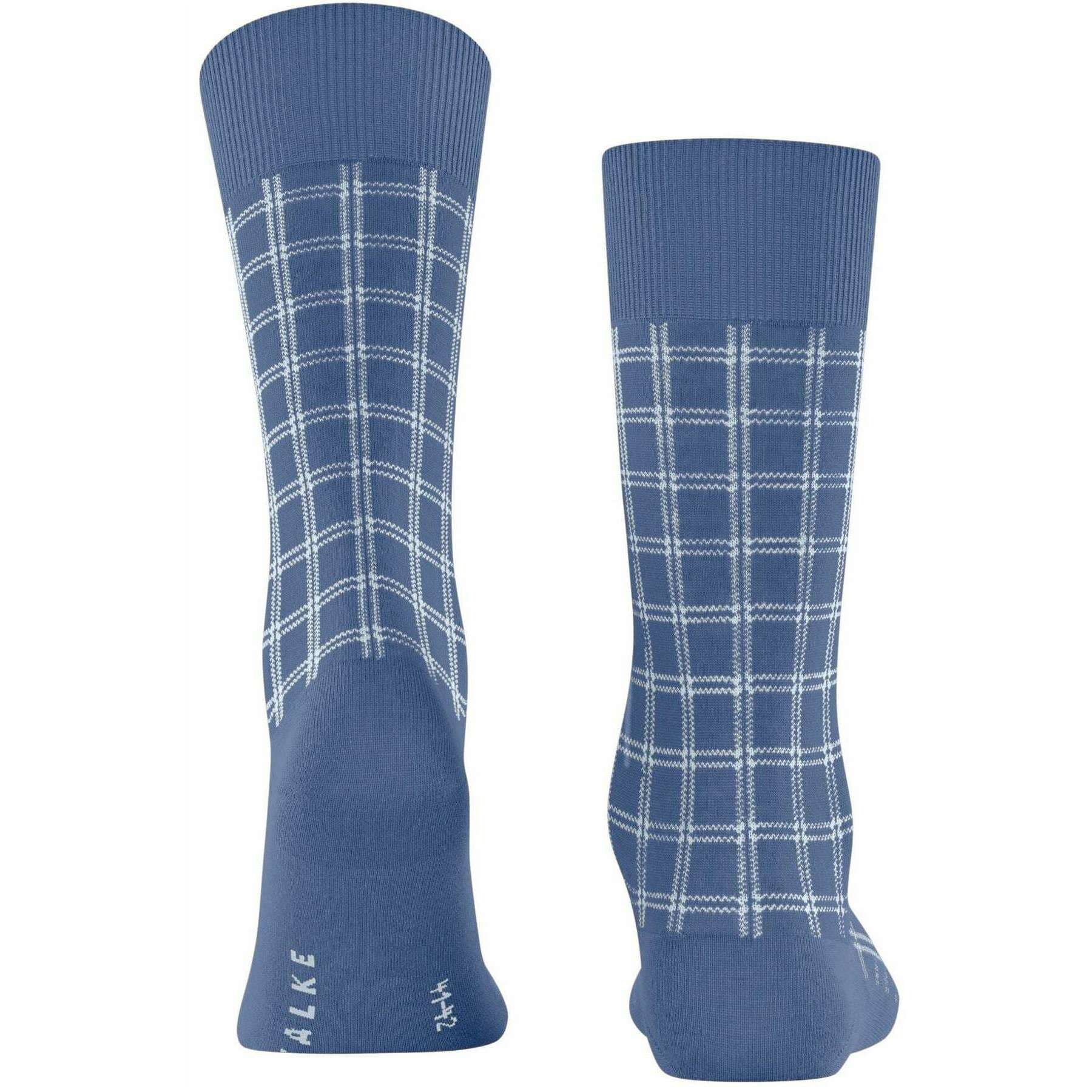 Perfect for men are these Falke smoky blue modern tailor socks, they are also made from 89% cotton, 9% polyamide and 2% elastane. Also the smoky blue socks are designed in a checked pattern, It is recommended to wash at 40 degrees to keep these socks in good condition. All the socks come complete with falke tags. The Falke Modern Tailor Socks - Smoky Blue embody a blend of timeless craftsmanship and contemporary check design. Crafted from carefully selected Falke We Care Cotton, these sustainable socks ensure comfort and style. With reinforced stress zones to enhance durability, you get a perfect Falke fit with each wear. Whether for everyday wear or special occasions, these socks are a testament to FALKE's commitment to quality and innovation in men's hosiery.