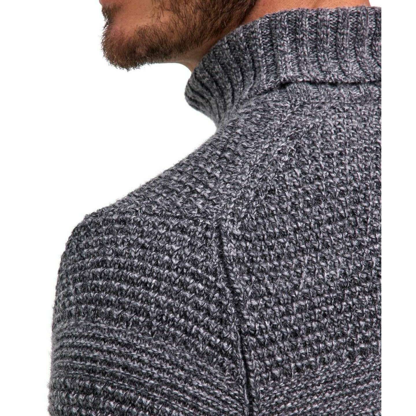• Chunky Knit , Block Striped Chest , Regular Fit , French Shoulders , Ribbed Turtleneck , Ribbed Cuffs , High-Quality 'Fully Fashioned' Processing