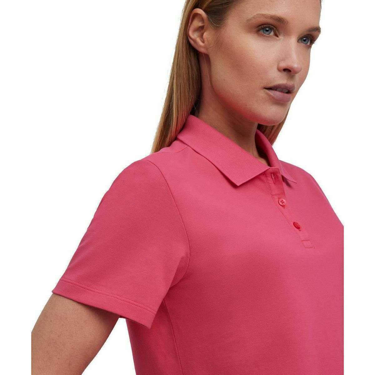 Brought to you by the brand Falke, this fuchsia pink women's pima pique boxy polo shirt is made from 100% cotton. Also the fuchsia pink polo shirt is designed in a plain pattern, It is recommended to machine wash at 30 degrees to keep this polo shirt in good condition. All the polo shirts come complete with falke packaging. The Falke Pima Pique Boxy Polo Shirt - Fuchsia Pink has been expertly crafted with hand-picked Pima cotton that is not only extremely soft and high-quality but also environmentally friendly. The small details give this shirt its gorgeous design which includes the ribbed polo collar, the modern boxy cut, the 3-button closure, the side slit, the piqu texture and the bright colour that is also long lasting.