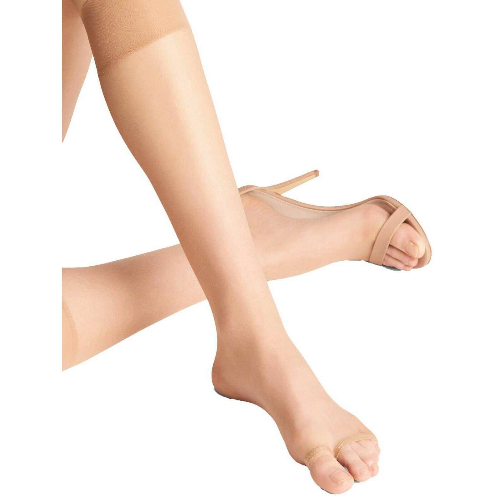 These women's shelina 12 denier toeless knee high socks by the brand Falke are made from 67% polyamide and 33% elastane and are showcased in beige. Also the powder beige tights are designed in a plain pattern, It is recommended to wash at 30 degrees to keep these tights in good condition. All the tights come complete with falke tags. The Falke Shelina 12 Denier Toeless Knee High Socks - Powder Beige are designed to fit like makeup on your skin. With 12 denier appearance and a unique naturalness these toeless knee-high socks are ideal with sandals and open shoes and are suitable for every skin type. The soft sensitive top band provides maximum comfort and a perfect FALKE fit. These knee-high socks strike the perfect balance between refined hosiery and modern practicality, making them a go-to choice for season-spanning wear and dressy occasions alike!