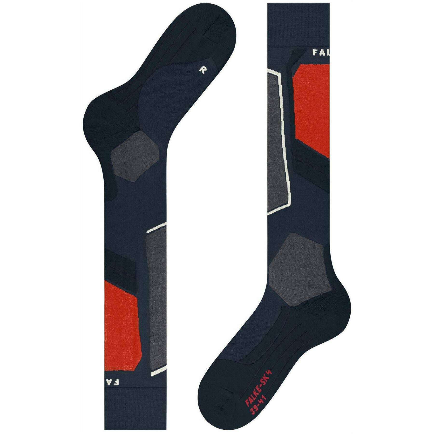 Manufactured from 45% polypropylene, 20% acrylic, 20% wool and 15% polyamide are these limoges blue men's sk4 advanced skiing knee high socks by the designer Falke. Also the limoges blue socks are designed in a block pattern, It is recommended to wash at 30 degrees to keep these socks in good condition. All the socks come complete with falke socks tags. The Falke SK4 Advanced Skiing Knee High Socks - Limoges Blue are designed with moisture wicking 3-layer construction to keep feet dry and blister free. With light cushioning, these ski socks offer great control and speed. A fast transport oh heat and moisture these socks have a high insulating and warming Merino wool mix with odour resistant qualities for a longer sporty day of skiing. Designed for premium comfort and exceptional durability, these ski socks have optimal fit and are suitable for customs boots.