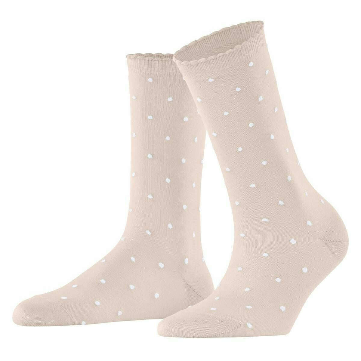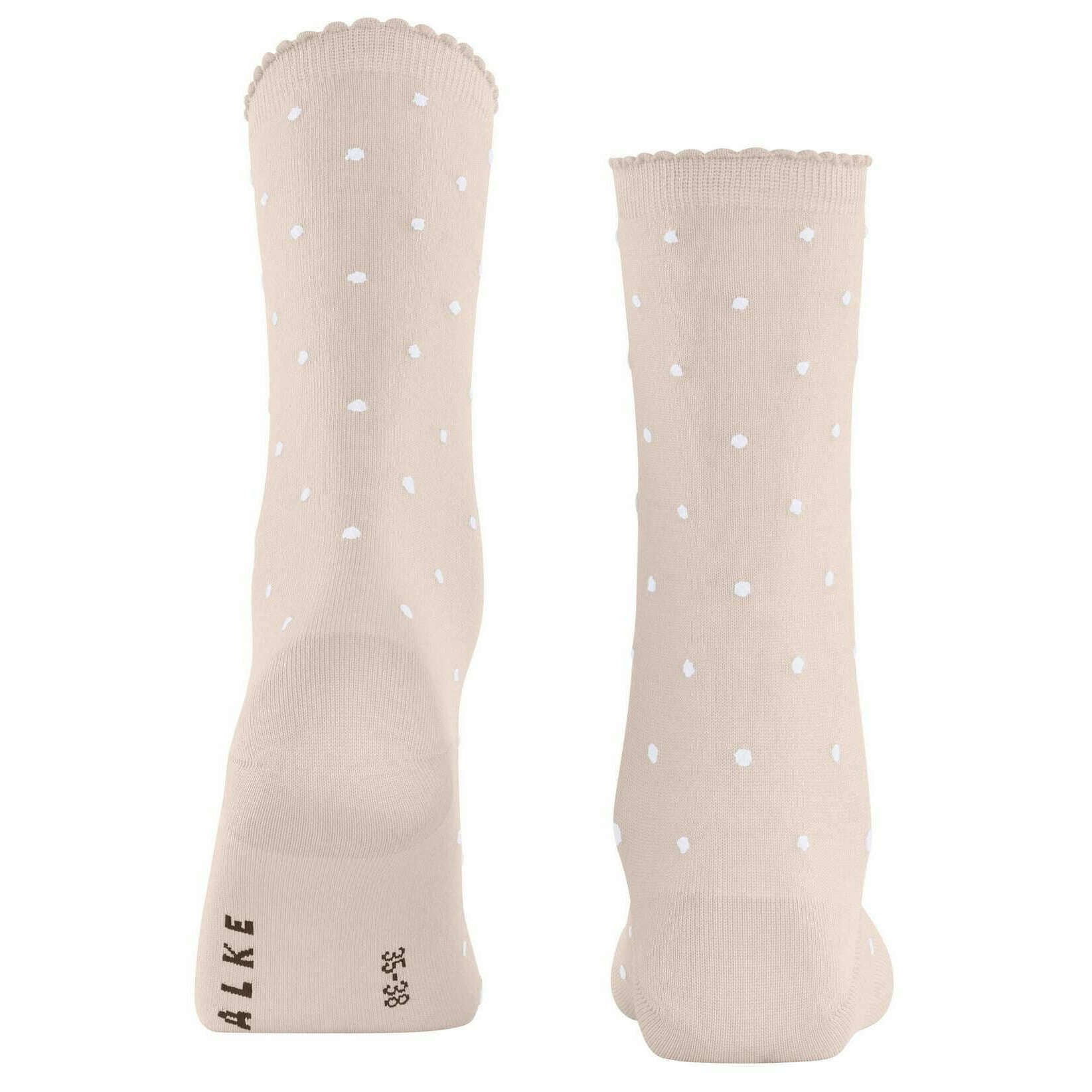 These well made women's spike dot socks from Falke come in a cream colour and are manufactured from 85% cotton, 10% polyamide, 4% rayon and 1% elastane. Also the cream socks are designed in a spots pattern, It is recommended to wash at 30 degrees to keep these socks in good condition. All the socks come complete with falke tags. The Falke Spike Dot Socks - Cream combine a feminine dot design with the skin-friendly comfort of FALKE WE CARE COTTON. Their fine, contrasting dots create a timeless and elegant look, making them a versatile accessory that complements both casual and chic outfits. The slightly ruffled cuff enhances their feminine appeal, while the smooth knitted background provides a refined finish. Made from sustainable, mercerised organic cotton, they reflect FALKE s commitment to resource saving, socially responsible, and traceable materials. Reinforced stress zones ensure lasting durability, and the signature FALKE Perfect Fit guarantees exceptional comfort throughout the day. Bringing together sustainable cotton comfort and fashionable design, these socks offer a stylish and responsible choice for everyday wear.