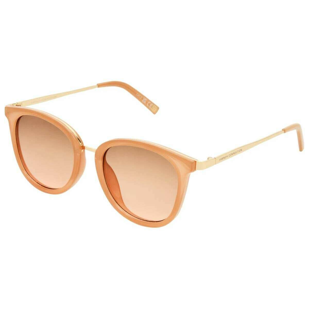Manufactured from plastic and metal are these milky nude pink/gold women's soft metal trim round sunglasses by the designer French Connection. It measures 5.3cm(lens width) x 2cm(bridge width) x 14.3cm(temple length). It is recommended to wipe clean with soft cloth to keep these sunglasses in good condition. All the sunglasses come complete with a protective case. The French Connection Soft Metal Trim Round Sunglasses - Milky Nude Pink/Gold Ensure 100% protection from the suns UVA and UVB rays, giving your vision the clarity it deserves when the sun is shining. Their gentle curves give them a delicate look on the face, offering subtle style to your summer wardrobe. The lenses are UV400 and feature a filter category 3 which ensures high protection against the sun.