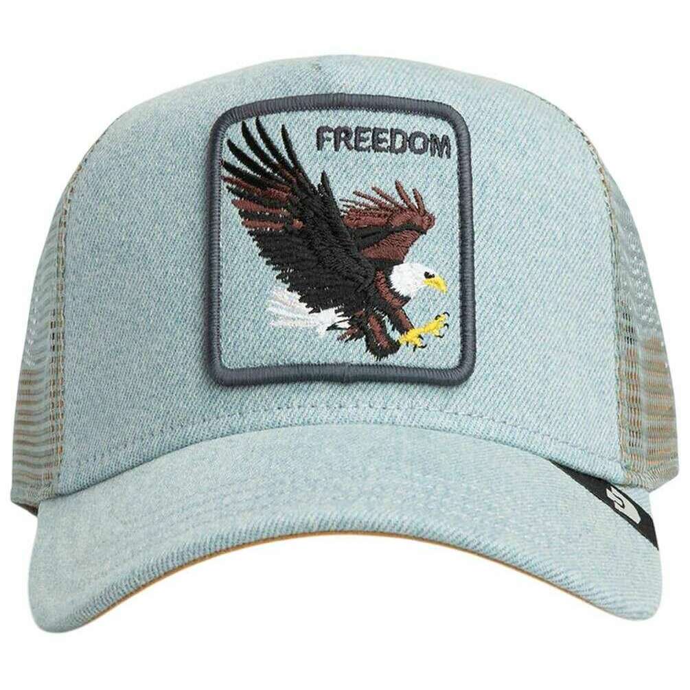 Designer Goorin Bros has brought you this unisex 57% polyester and 43% cotton hat using light denim blue tones. All the hats come complete with goorin bros tags. The Goorin Bros Denim Eagle Trucker Hat - Light Denim Blue blends timeless denim style with unmistakable Goorin Bros character. This cap merges a classic look with modern, high?quality embroidery, creating a statement piece that s easy to wear, bold in presence, and perfect for everyday outfits. The intricately embroidered eagle patch serves as a powerful focal point, giving the cap its strong and distinctive identity. Lightweight mesh at the back ensures optimal ventilation, while the adjustable snapback closure guarantees a consistently perfect fit. With its clean, summery denim finish and premium craftsmanship, this cap is ideal for anyone looking to combine timeless style, superior quality, and a confident appearance. A versatile essential for both relaxed and expressive looks.