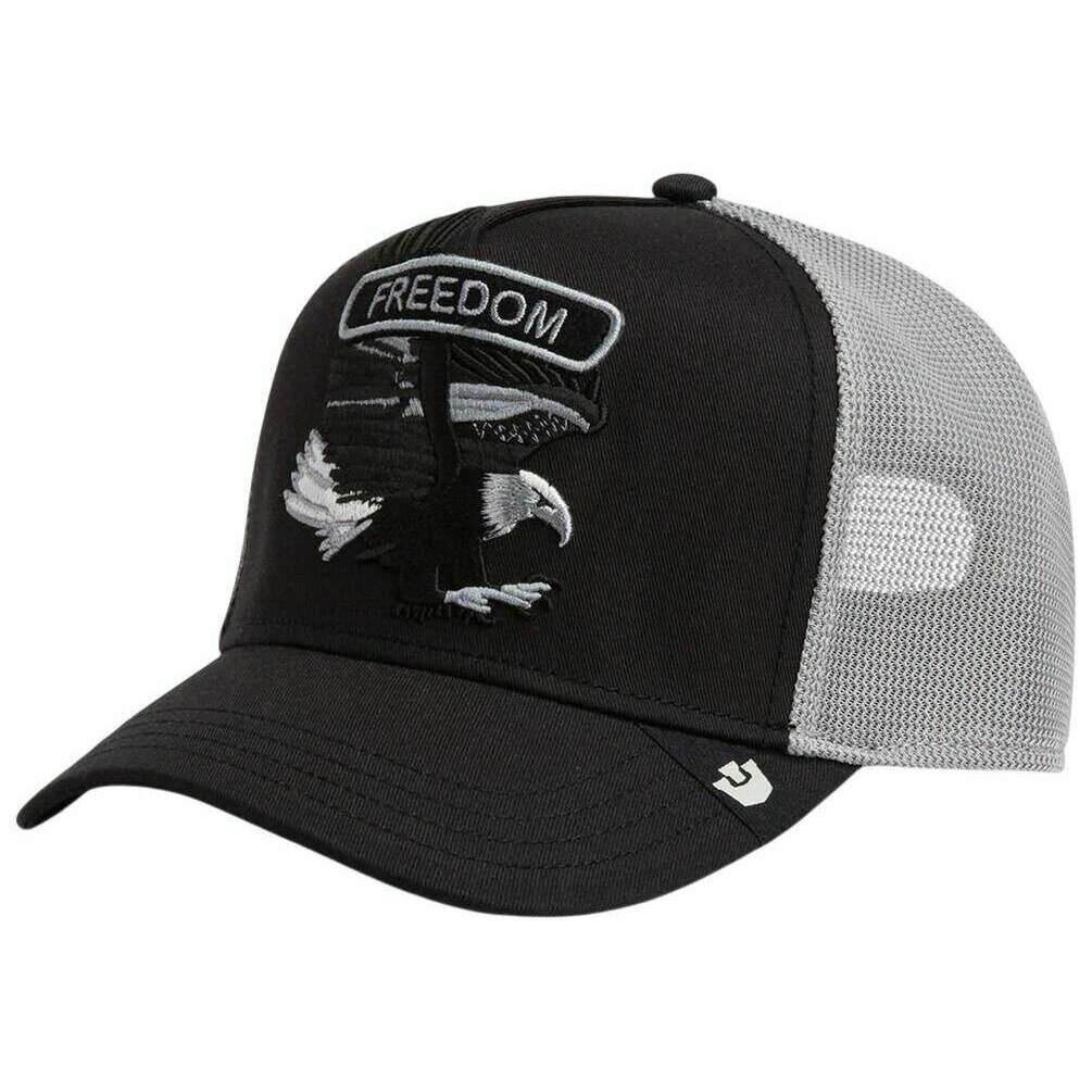 This unisex freedom classic rocker trucker hat by the brand Goorin Bros is made from 57% polyester and 43% cotton and is showcased in black. All the hats come complete with goorin bros tags. The Goorin Bros Freedom Classic Rocker Trucker Hat - Void Black celebrates pure independence with every detail. This Goorin Bros design flawlessly blends striking embroidery with a clean, modern aesthetic that instantly draws attention. At the heart of the cap is its intricately embroidered eagle, a powerful symbol of strengthandself?determination. This commanding motif transforms the cap into a true statement piece for anyone who carries a spirit of freedom within. The breathable mesh back ensures lasting comfort, while the adjustable snapback closure offers a secure, personalised fit. Crafted with high?quality materials and defined by its expressive design, this cap is ideal for anyone who not only values freedom but proudly wears it.