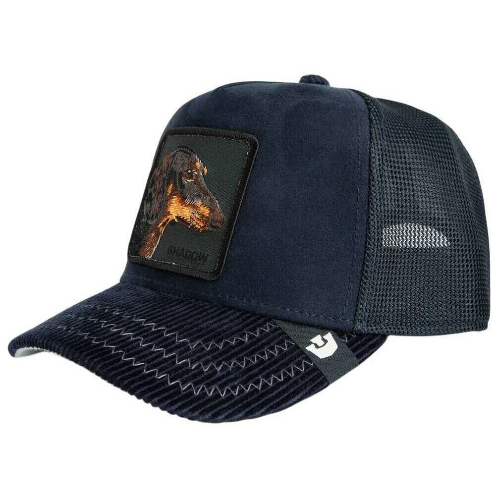 Designer Goorin Bros has brought you this unisex 57% polyester and 43% cotton hat using navy tones. All the hats come complete with goorin bros tags. The Goorin Bros Shadow Remix Trucker Hat - Navy is made for those who influence with presence not volume. This Goorin Bros design brings style with depth, crafted for people who say more with a single glance than others do with a hundred posts. Dark blue velvet gives the cap a luxurious, shadowy allure, while the corduroy peak with bold statement stitching adds texture and attitude. At the centre, the black dog patch sets the tone: calm, alert, confident an emblem of silent strength. Designed for quiet leaders, shadow warriors, and elegant lone wolves, the cap features a breathable mesh back and an adjustable snapback closure for maximum comfort and a perfect, personalised fit.