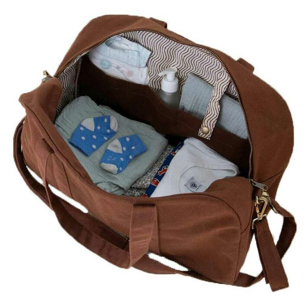 Using brown 100% organic cotton (500g/m2), this basile baby bag by Hindbag is perfect for men or women and a must have. It measures 28cm(height) x 48cm(width) x 19cm(depth). All the bags come complete with hindbag packaging. The Hindbag Basile Baby Bag - Chocolate Brown is a large capacity organic cotton changing bag designed to accompany parents on their everyday journeys and longer outings. With enough room to hold all your baby s essentials, this bag features five pockets for organizing items. The velcro straps can be attached to a stroller for hands-free walking or pushing the stroller, while the adjustable handle gives the option to carry by hand or over the shoulder. The colourful interior lining adds a unique artisanal touch to this baby diaper bag.