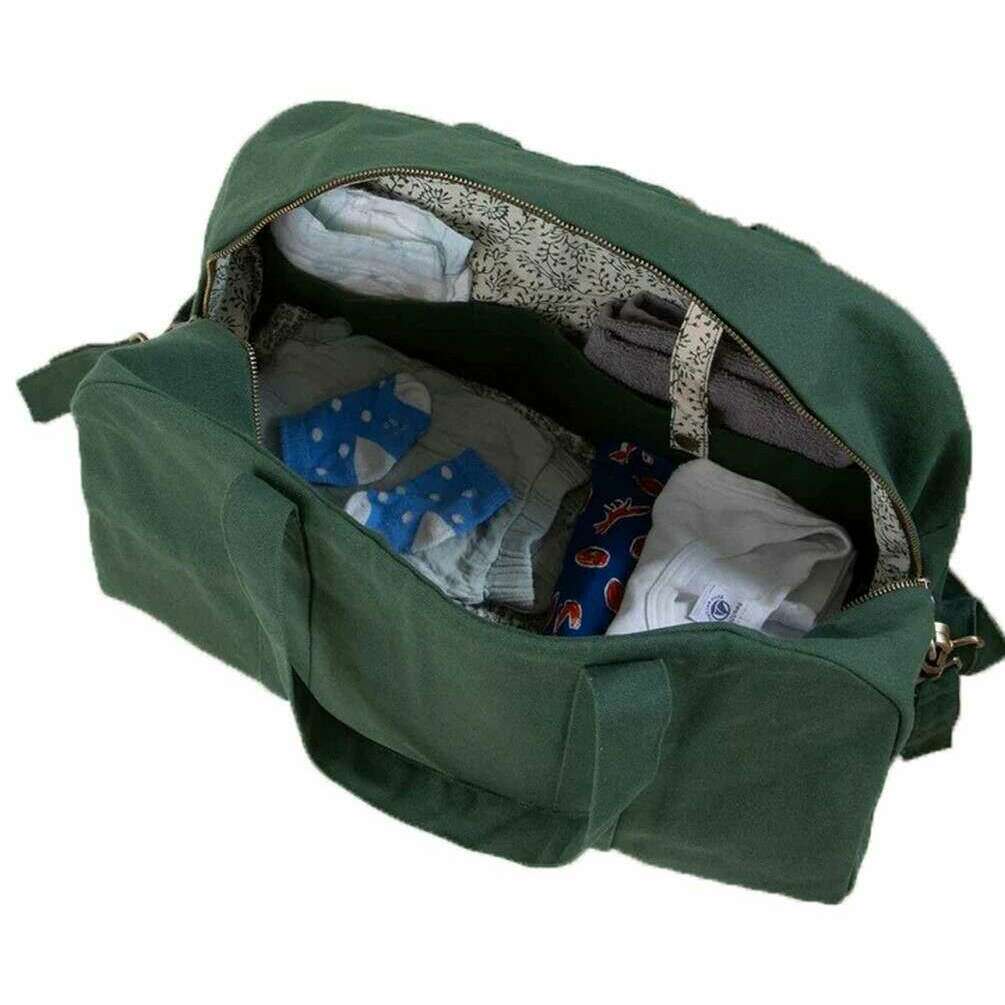Manufactured from 100% organic cotton (500g/m2) is this forest green unisex basile baby bag by the designer Hindbag. It measures 28cm(height) x 48cm(width) x 19cm(depth). All the bags come complete with hindbag packaging. The Hindbag Basile Baby Bag - Forest Green is a large capacity organic cotton changing bag designed to accompany parents on their everyday journeys and longer outings. With enough room to hold all your baby s essentials, this bag features five pockets for organizing items. The velcro straps can be attached to a stroller for hands-free walking or pushing the stroller, while the adjustable handle gives the option to carry by hand or over the shoulder. The colourful interior lining adds a unique artisanal touch to this baby diaper bag.