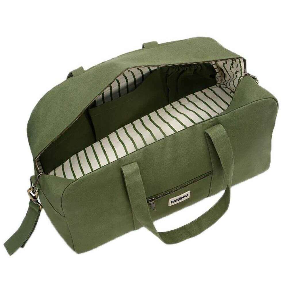 Brought to you by the brand Hindbag, this olive green unisex basile baby bag is made from 100% organic cotton (500g/m2). It measures 28cm(height) x 48cm(width) x 19cm(depth). All the bags come complete with hindbag packaging. The Hindbag Basile Baby Bag - Olive Green is a large capacity organic cotton changing bag designed to accompany parents on their everyday journeys and longer outings. With enough room to hold all your baby s essentials, this bag features five pockets for organizing items. The velcro straps can be attached to a stroller for hands-free walking or pushing the stroller, while the adjustable handle gives the option to carry by hand or over the shoulder. The colourful interior lining adds a unique artisanal touch to this baby diaper bag.