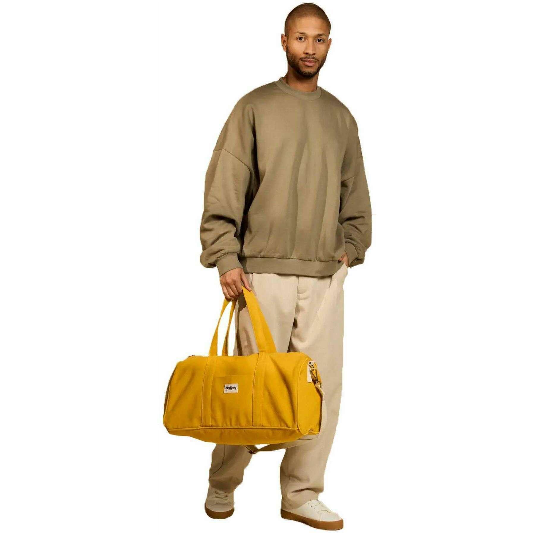 Manufactured from 100% organic cotton is this saffron yellow unisex gabriel weekend bag by the designer Hindbag. It measures 24cm(height) x 24cm(width) x 48cm(depth). All the bags come complete with hindbag packaging. The Hindbag Gabriel Weekend Bag - Saffron Yellow offers ample room to store all your essentials for your getaway trips! Featuring 3 interior patch pockets and an exterior pocket, it offers optimal space to carry your essentials while keeping them well organized. With its adjustable and detachable shoulder strap you have versatility in carrying options while the comfortable carry handles allow for easy hand carrying. For added security, Gabriel is equipped with a robust zipper that keeps your belongings well-protected and complements both casual and formal outfits, making it a versatile accessory for various occasions.