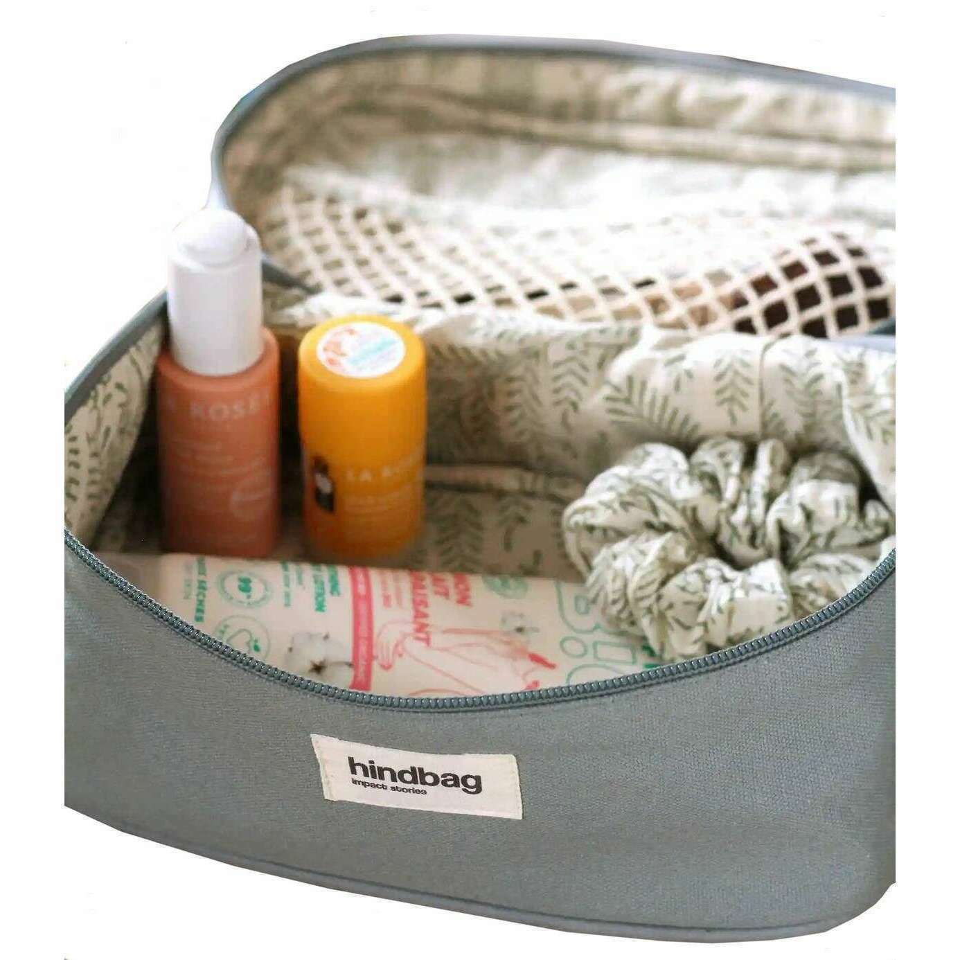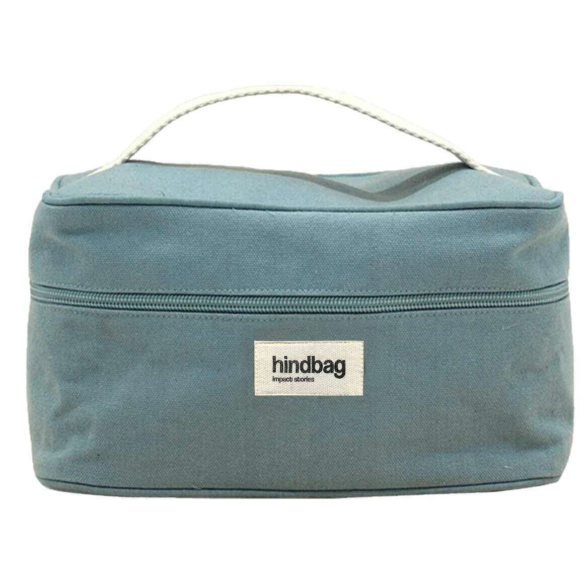 Manufactured from 100% organic cotton is this sage blue unisex gaspard vanity bag by the designer Hindbag. It measures 13.5cm(height) x 16cm(width) x 25cm(depth). All the bags come complete with hindbag packaging. The Hindbag Gaspard Vanity Bag - Sage Blue offers travellers and everyday users alike a convenient and stylish way to keep their toiletries organized and accessible. The interior net is perfect for neatly arranging toiletries, cosmetics, and other personal items. Available in a range of colours, this fashionable accessory represents a harmonious fusion of functionality and aesthetics, catering to those who value both style and practicality in their journey.