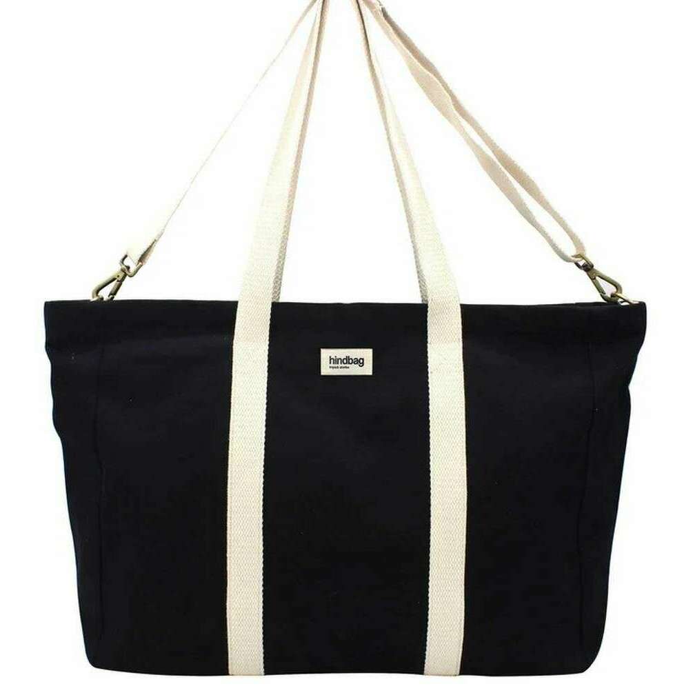 This well made unisex jean weekend bag from Hindbag comes in a black colour and is manufactured from 100% organic cotton. It measures 38cm(height) x 60cm(width) x 16cm(depth). All the bags come complete with hindbag tags. The Hindbag Jean Weekend Bag - Black is a great choice for travel as its large main section is nice and spacious, giving you the room for overnight necessities. It is fitted with two carry handles and a shoulder strap that can be adjusted to suit. Inside it also has a pocket for smaller items like your keys or phone. Crafted from thick, resistant organic cotton which is labelled GOTS meaning the production and transformation processes respect the environment and respect and improve working conditions. The lining is decorated with an elegant pattern, giving the bag some stylish flair.