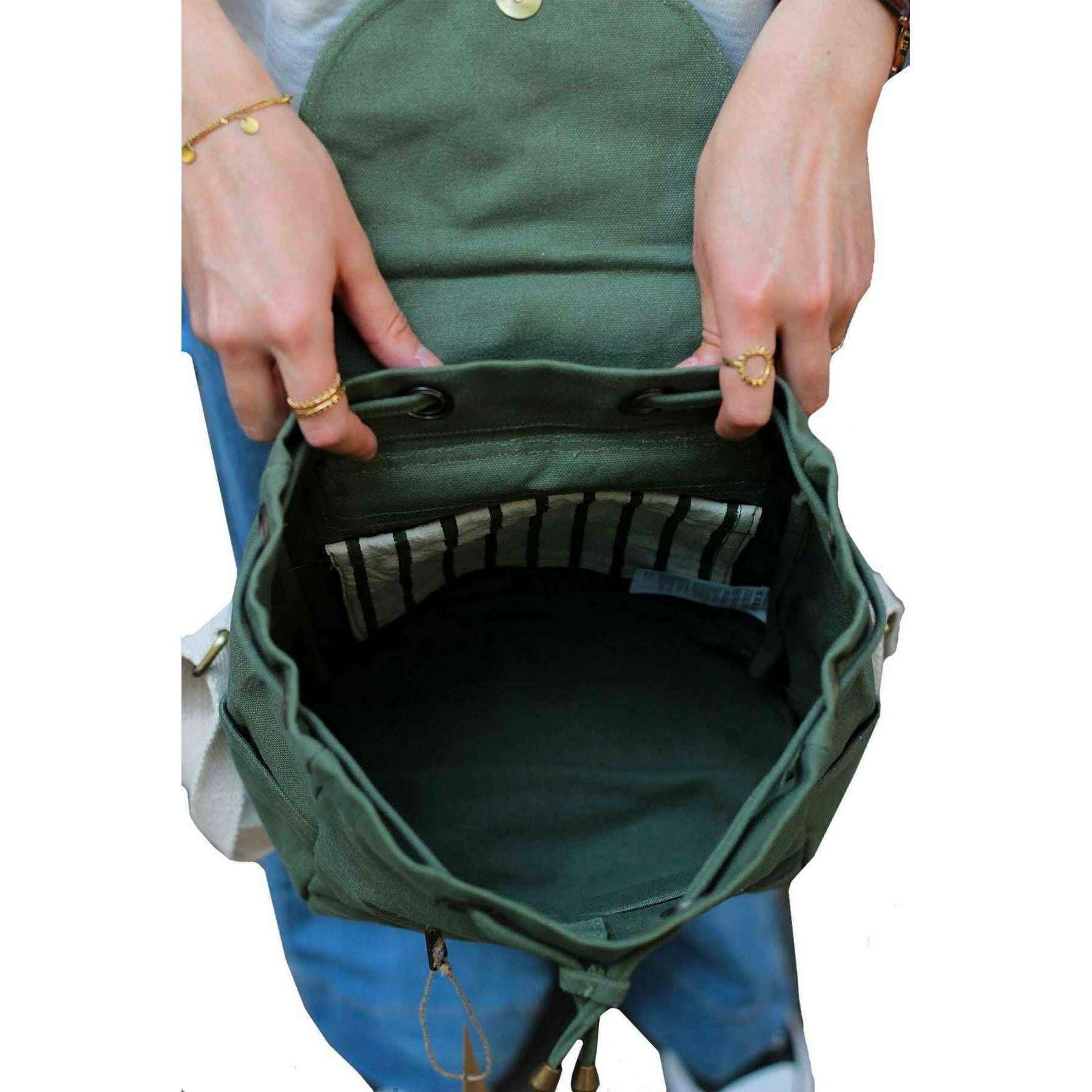 This mini eliot small backpack for men or women is fashioned by the brand Hindbag in a green colour and is made from 100% organic cotton. It measures 31cm(height) x 24cm(width) x 13cm(depth). All the bags come complete with hindbag packaging. The Hindbag Mini Eliot Small Backpack - Olive Green is suitable for young and old alike! Featuring two exterior pockets and one interior pocket, you can slip in what you need while keeping your hands free. The timeless design of this mini backpack blend vintage charm with modern functionality, making them a popular choice for daily use.