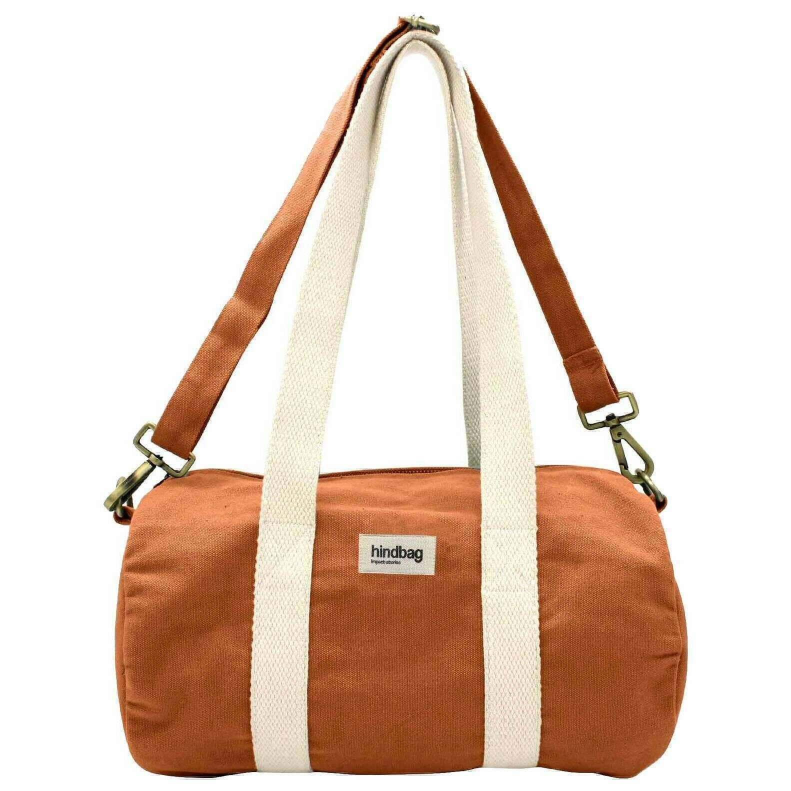 This mini simon small duffle bag for men or women is fashioned by the brand Hindbag in a red colour and is made from 100% organic cotton. It measures 18cm(height) x 35cm(width) x 18cm(depth). All the bags come complete with hindbag packaging. The Hindbag Mini Simon Small Duffle Bag - Sienna Orange is a versatile and eco-conscious travel companion designed for those seeking functionality without compromising on style. Featuring an outer zippered pocket and adjustable shoulder strap for comfort, this duffel bag offers ample space for essentials while maintaining a sleek profile, making it ideal for weekend getaways, gym sessions, or daily commutes.