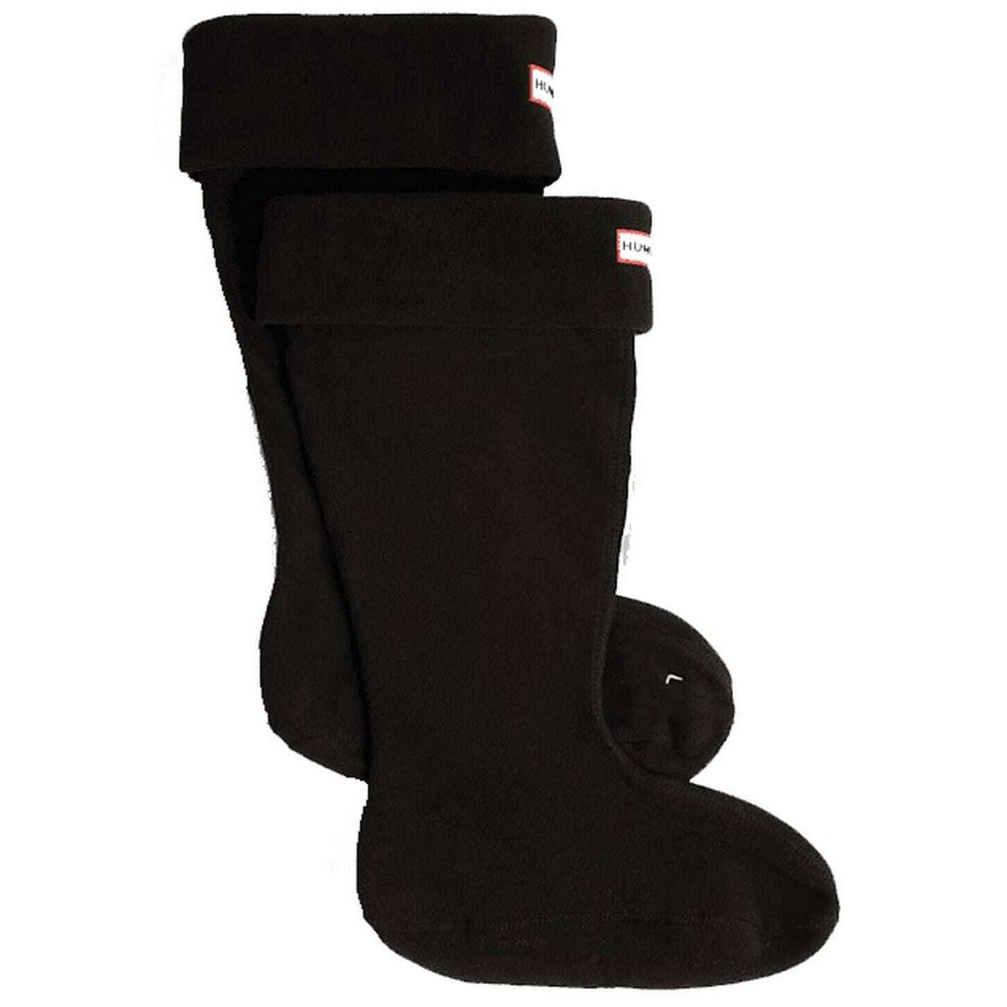 Using black 100% post-consumer recycled polyester fleece, these downpour fleece tall boot socks by Hunter are perfect for men or women and a must have. Also the black socks are designed in a plain pattern, All the socks come complete with hunter packaging. The Hunter Downpour Fleece Tall Boot Socks - Black have been crafted to fit tall welly boots with a fold down cuff to ensure an enhanced fit keeping them from falling down. Designed with left and right foot shaping with markers on the bottom allow for an exact fit and optimal comfort when on your muddy travels. The recycled fleece material being completely vegan ensures an environmentally friendly wear whilst keeping your warm and snug. Finished with Hunter branding on the cuff for a complete look.
