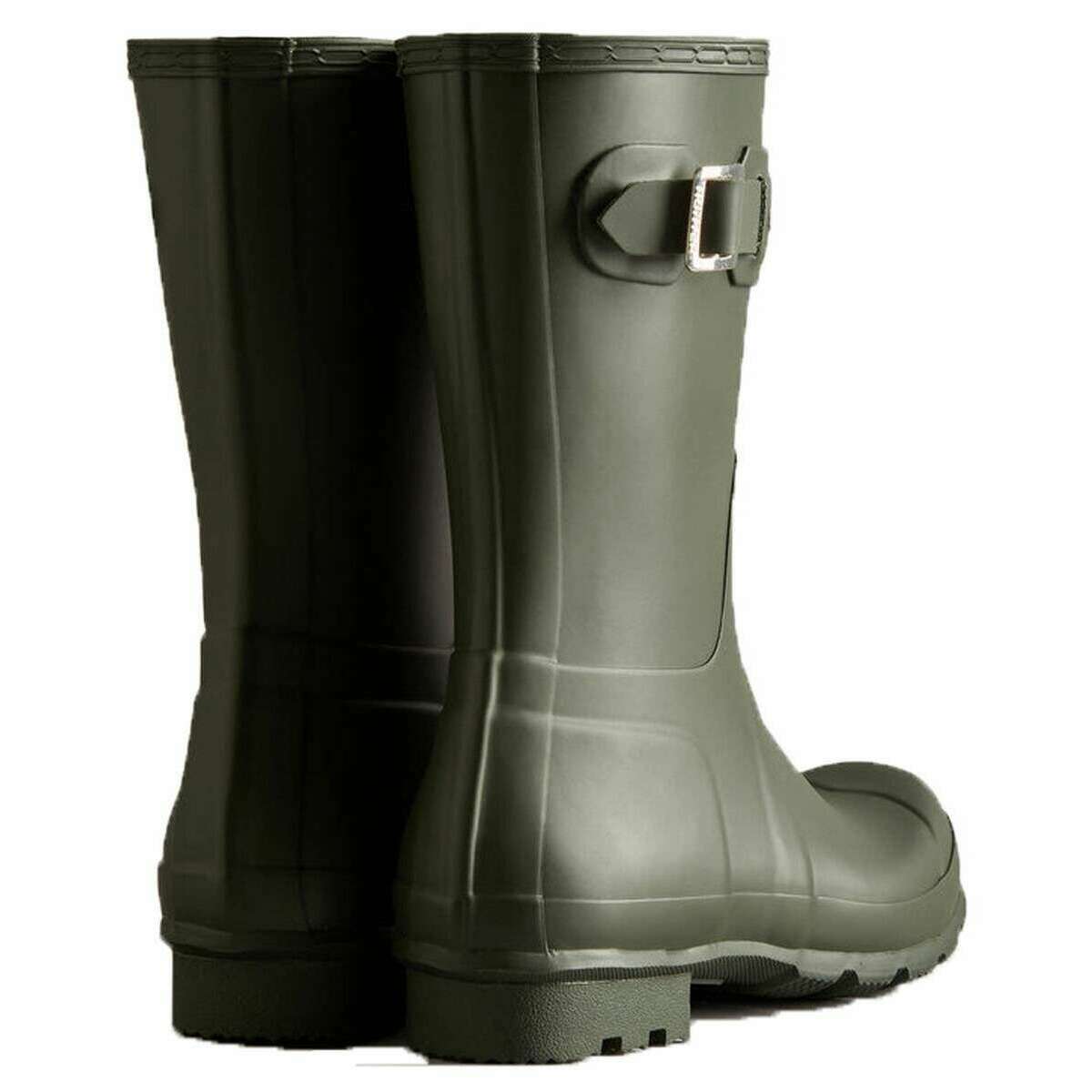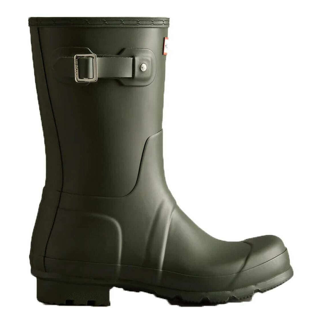 This men's original short wellington boots has been made from 100% rubber, featured in a green colour and is from the brand Hunter. All the wellington boots come complete with hunter packaging. The Hunter Original Short Wellington Boots - Dark Olive offers a versatile mid?calf design inspired by Hunter s iconic Tall Boot. It is handcrafted from 28 natural rubber parts and takes over three days to assemble before being vulcanised for durability and waterproof protection. The boot features a matte finish, a comfortable polyester lining, and the Hunter Original tread pattern for reliable grip. Certified vegan and fully waterproof, it provides everyday comfort and classic style.