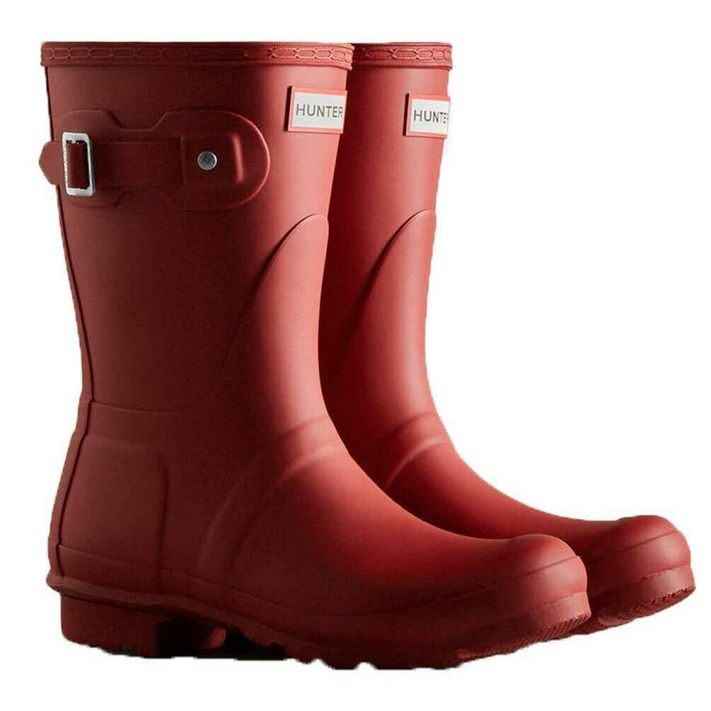 Introducing this women's original short wellington boots by Hunter, it is manufactured from 100% rubber in a miliatry red colour. All the wellington boots come complete with hunter packaging. The Hunter Original Short Wellington Boots - Miliatry Red offers a compact version of Hunter s iconic Tall Boot, designed for reliable wet?weather protection. Each pair is handcrafted from 28 natural rubber parts and assembled over three days before being vulcanised for durability and waterproof performance. The boot features a matte finish, the Hunter Original tread pattern, and an updated recycled polyester lining and insole for added comfort. Specially engineered to repel water and prevent moisture seepage, this certified vegan boot is an essential choice for rainy days.