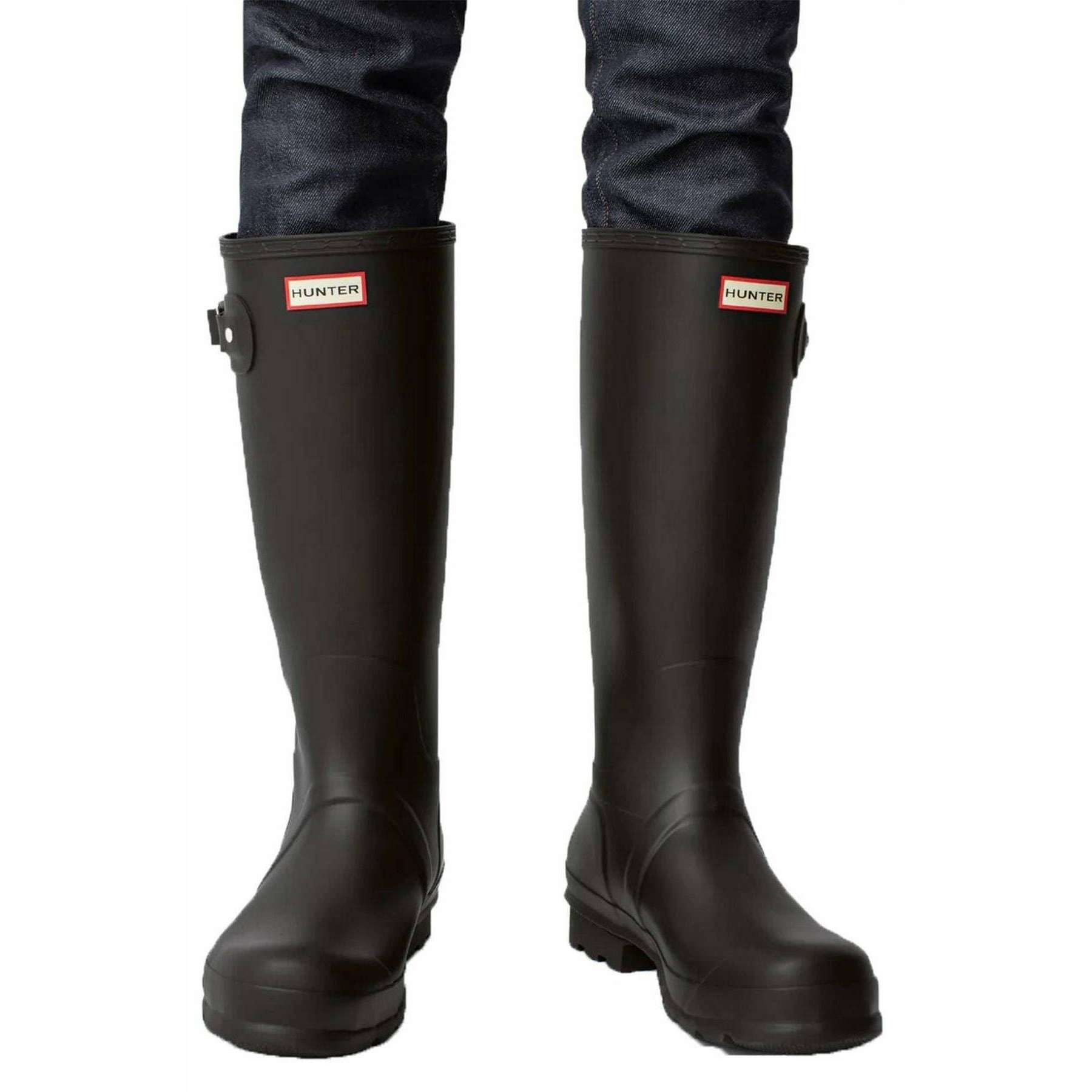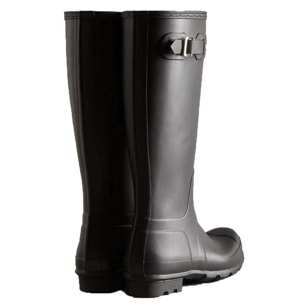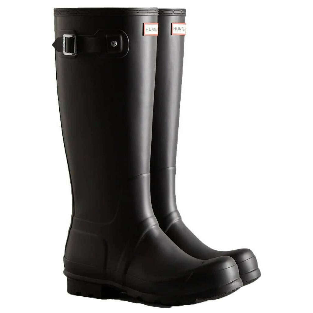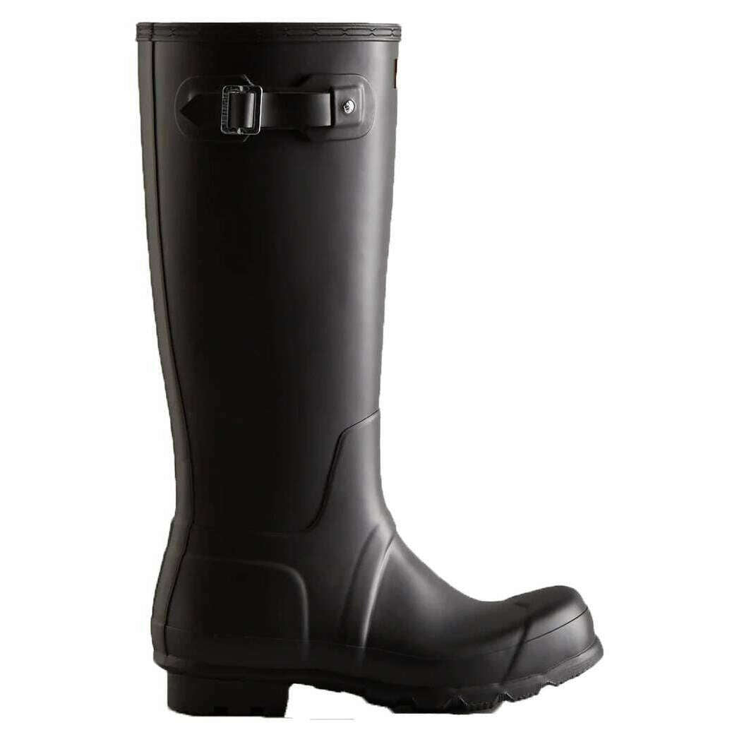 This men's original tall wellington boots has been made from 100% rubber, featured in a black colour and is from the brand Hunter. All the wellington boots come complete with hunter packaging. The Hunter Original Tall Wellington Boots - Black delivers the iconic protection Hunter has offered since 1956. It is handcrafted from 28 hand?cut natural rubber parts and assembled over three days before being vulcanised for full waterproof performance. The boot features a matte finish, a recycled polyester lining, and the Hunter Original tread pattern for secure grip. Designed to repel water and prevent moisture penetration, this certified vegan boot is an essential choice for wet?weather wear.