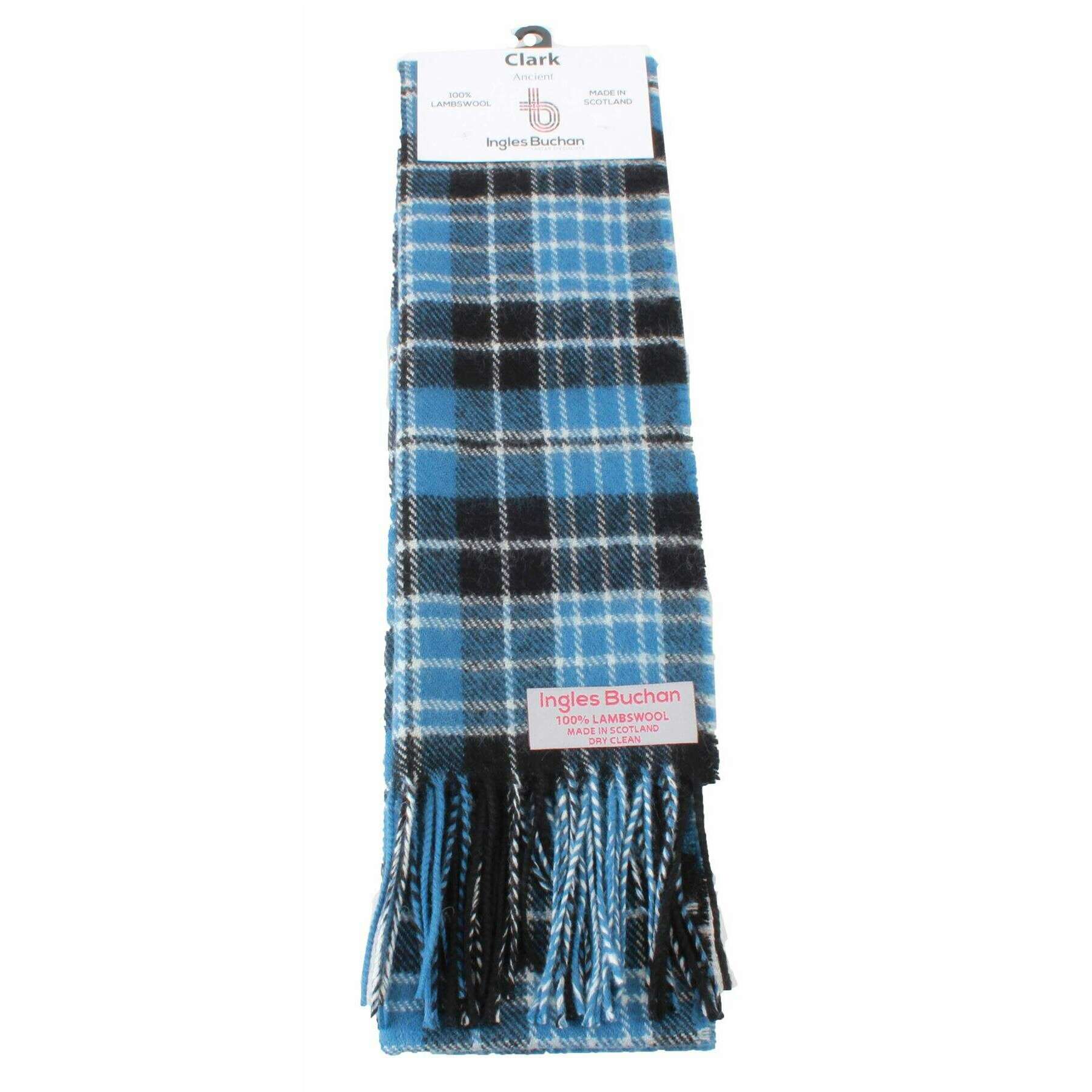 Ingles Buchan Clark Ancient Lambswool Scarf - White/Black/Blue