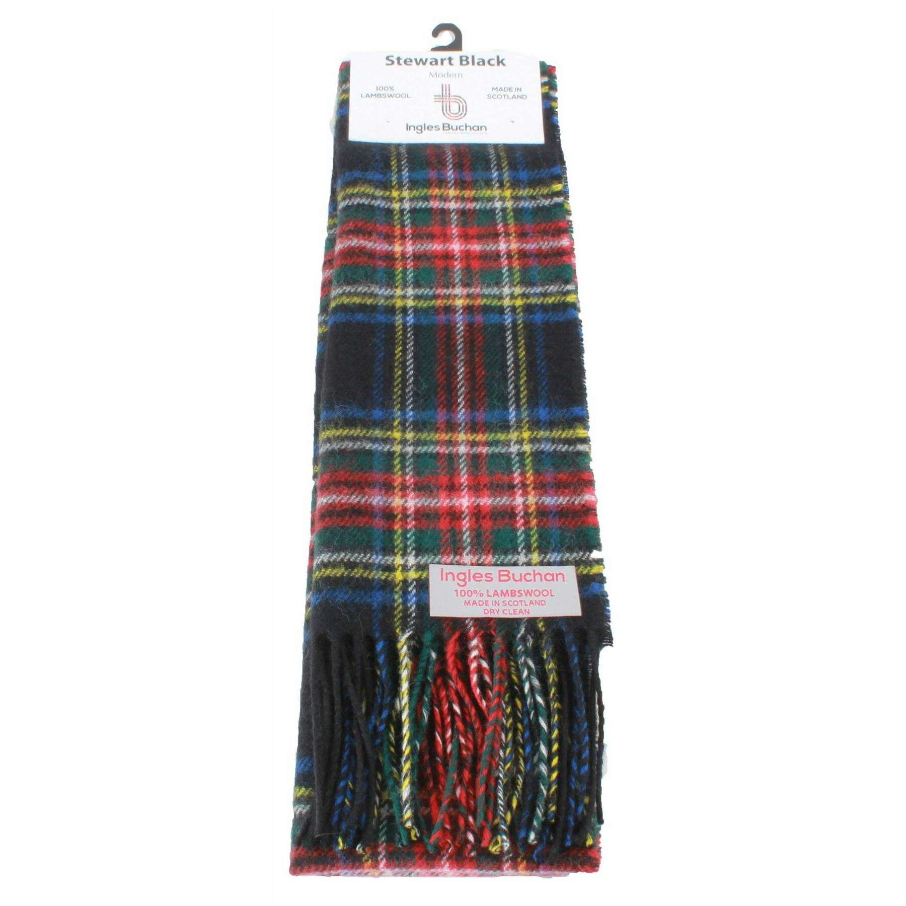 Perfect for men or women is this Ingles Buchan black/white/green stewart black modern lambswool scarf, it is also made from 100% lambswool. It measures 180cm(height) x 25cm(width). Also the black/white/green scarf is designed in a tartan pattern, It is recommended to dry clean to keep this scarf in good condition. All the scarves come complete with ingles buchan tags The Ingles Buchan Stewart Black Modern Lambswool Scarf - Black/White/Green is a classic colourful tartan piece that is sure to standout and provide you with a stylish fashionable look that would be a suitable for any occasion. Made using the highest quality of Lambswool this checkered black, red and yellow modern scarf is of the upmost of comfort.
