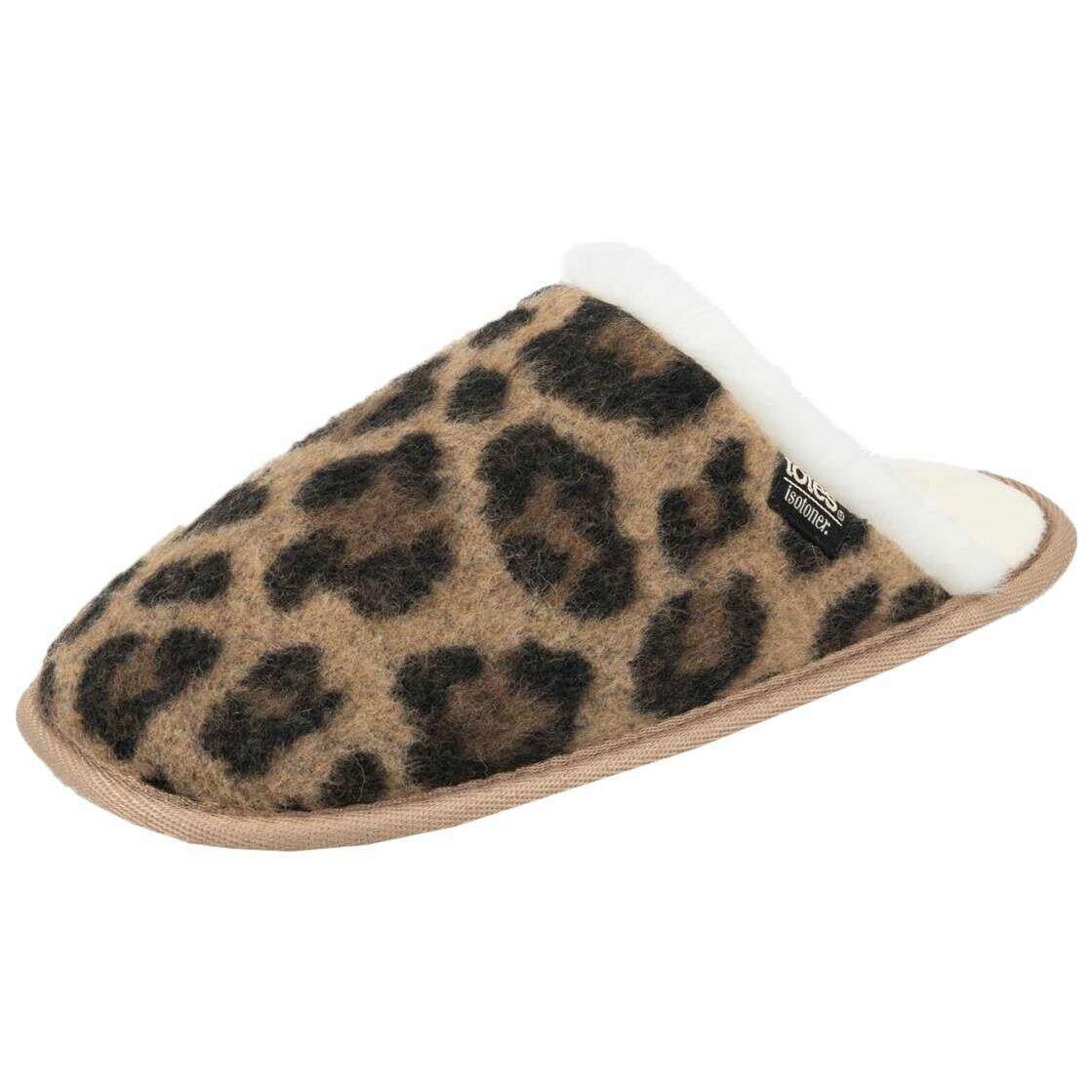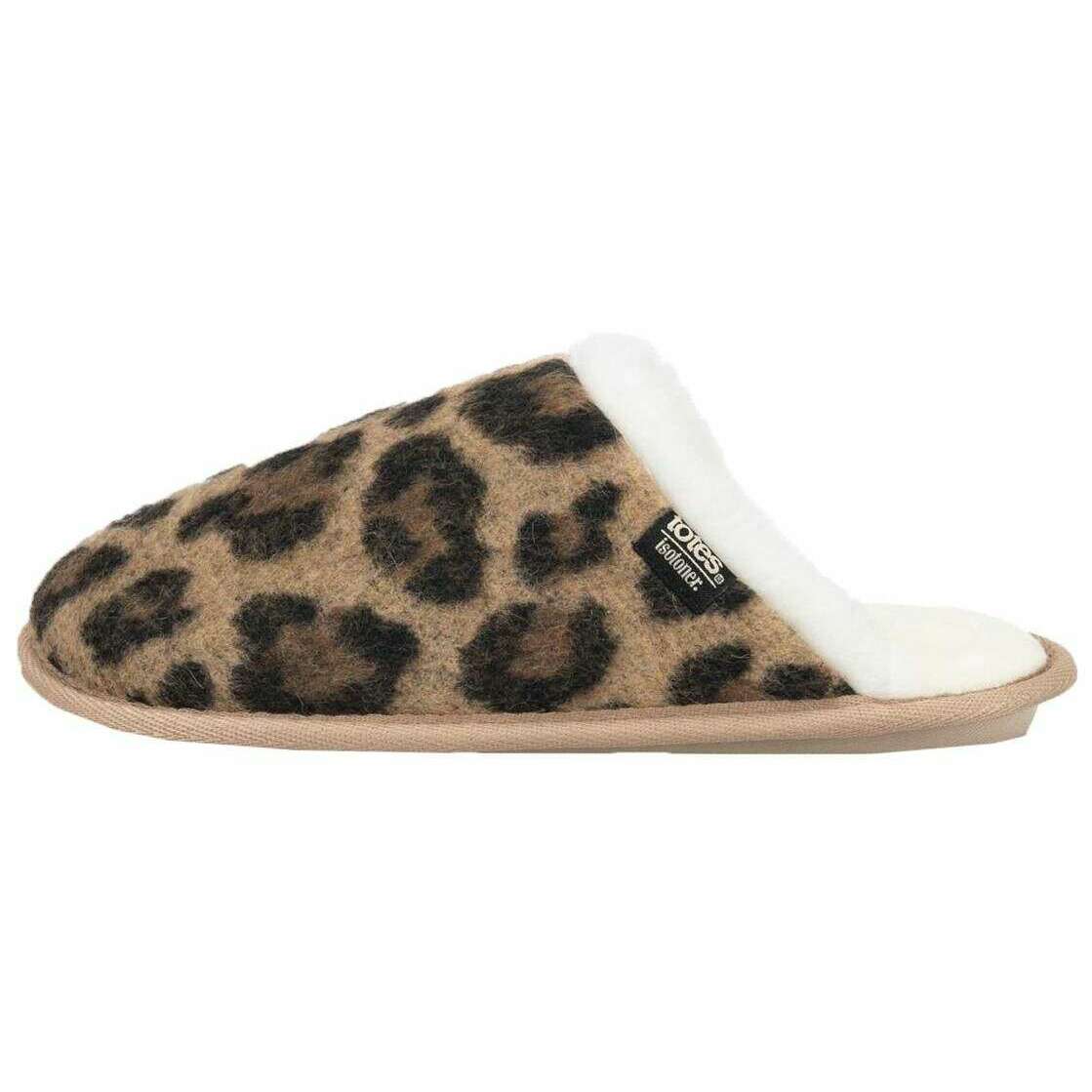 Isotoner Animal Fur Mule Slippers - Brown Leopard