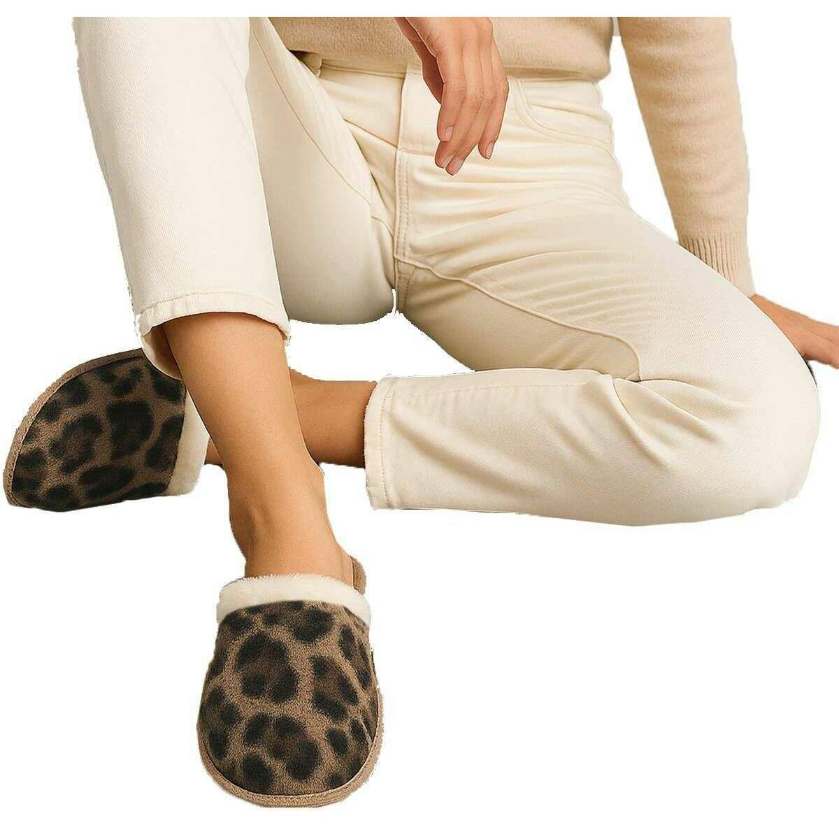 Perfect for women are these Isotoner brown leopard animal fur mule slippers, they are also made from 100% polyester. Also the brown leopard slippers are designed in a unique pattern, It is recommended to machine wash at 30 degrees to keep these slippers in good condition. All the slippers come complete with isotoner packaging. The Isotoner Animal Fur Mule Slippers - Brown Leopard trendy and popular will make a great addition to your indoor attire. Featuring pillow step cushioned technology for underfoot cushioning, a foam layer, a heel layer for support and a durable flat sole for optimal comfort. The warm lining ensures your feet and nice and toasty when doing chores, cooking or just relaxing. The faux fur trim completes this pair.