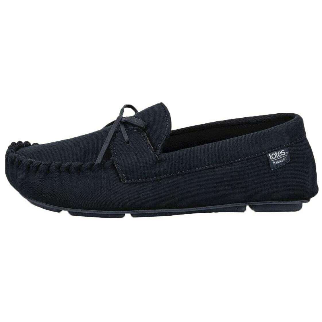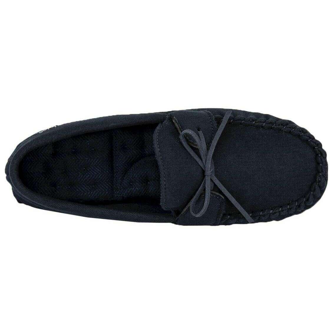 Isotoner Herringbone Lined Moccasin Slippers - Navy