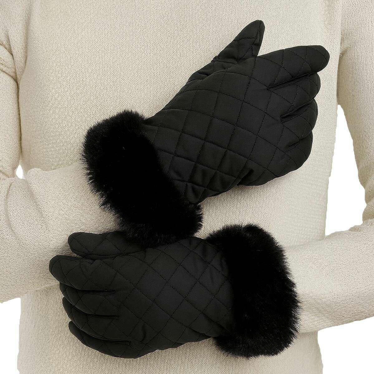 • SmarTouch Technology on Index Fingers and Thumbs , Water-Resistant Coating , Soft Lining , Faux Fur Cuff