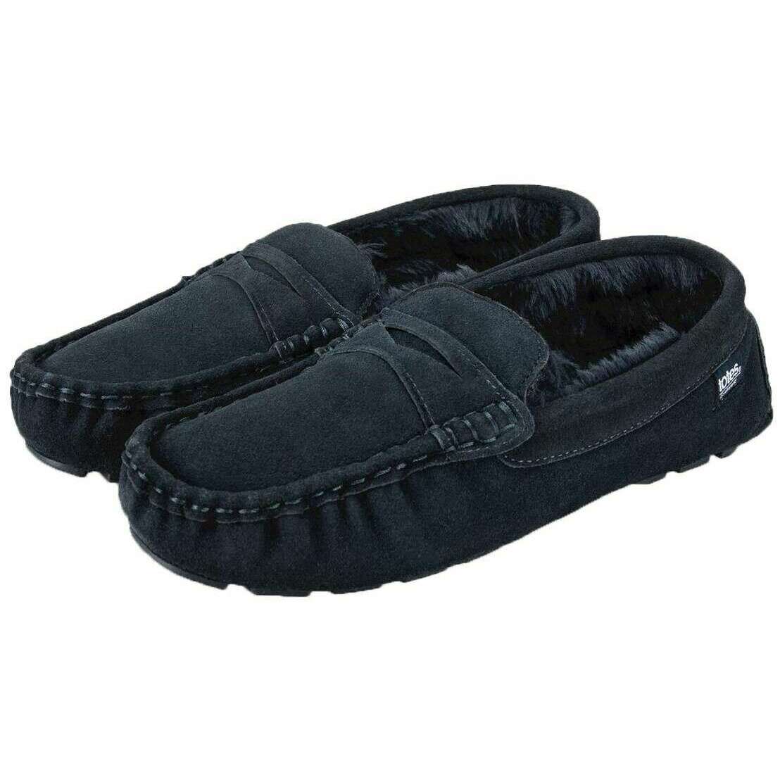 These men's suede moccasin slippers by the brand Isotoner are made from 100% suede exterior and polyester lining and are showcased in navy. Also the navy slippers are designed in a plain pattern, It is recommended to do not wash and wipe clean with a damp cloth to keep these slippers in good condition. All the slippers come complete with isotoner packaging. The Isotoner Suede Moccasin Slippers - Navy will be a great addition to any gentleman's loungewear collection that will ensure style and sophistication but also comfort, support and warmth. Featuring pillow step cushioned technology with added memory foam gives a cloud like feeling, perfect for relaxing at home. Finished with a durable flexible sole for a slip resistant tread and support and a water-repellent wear.