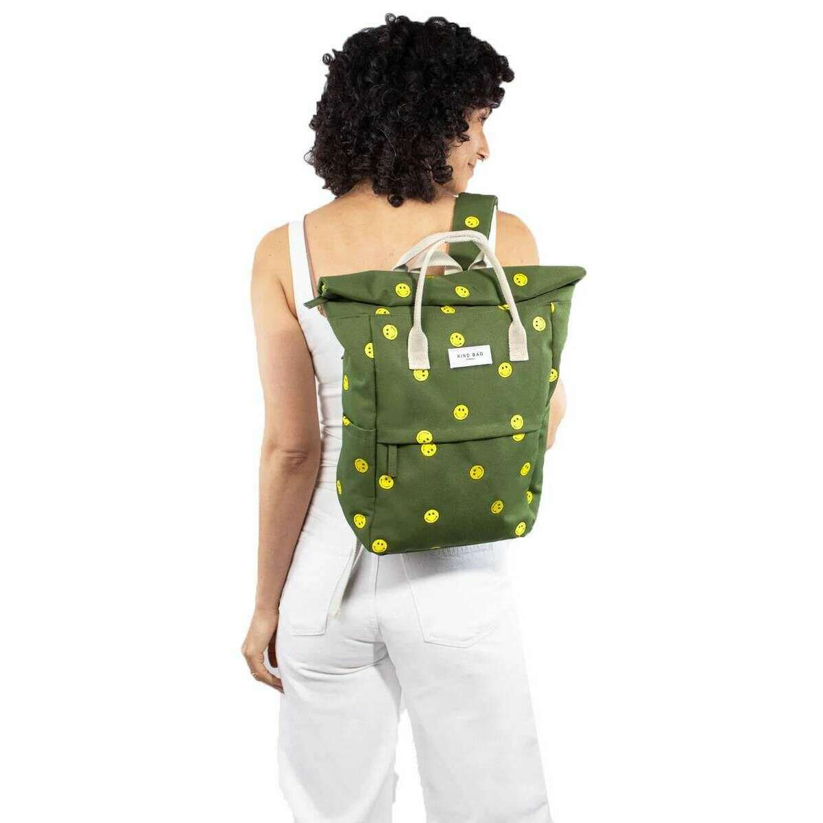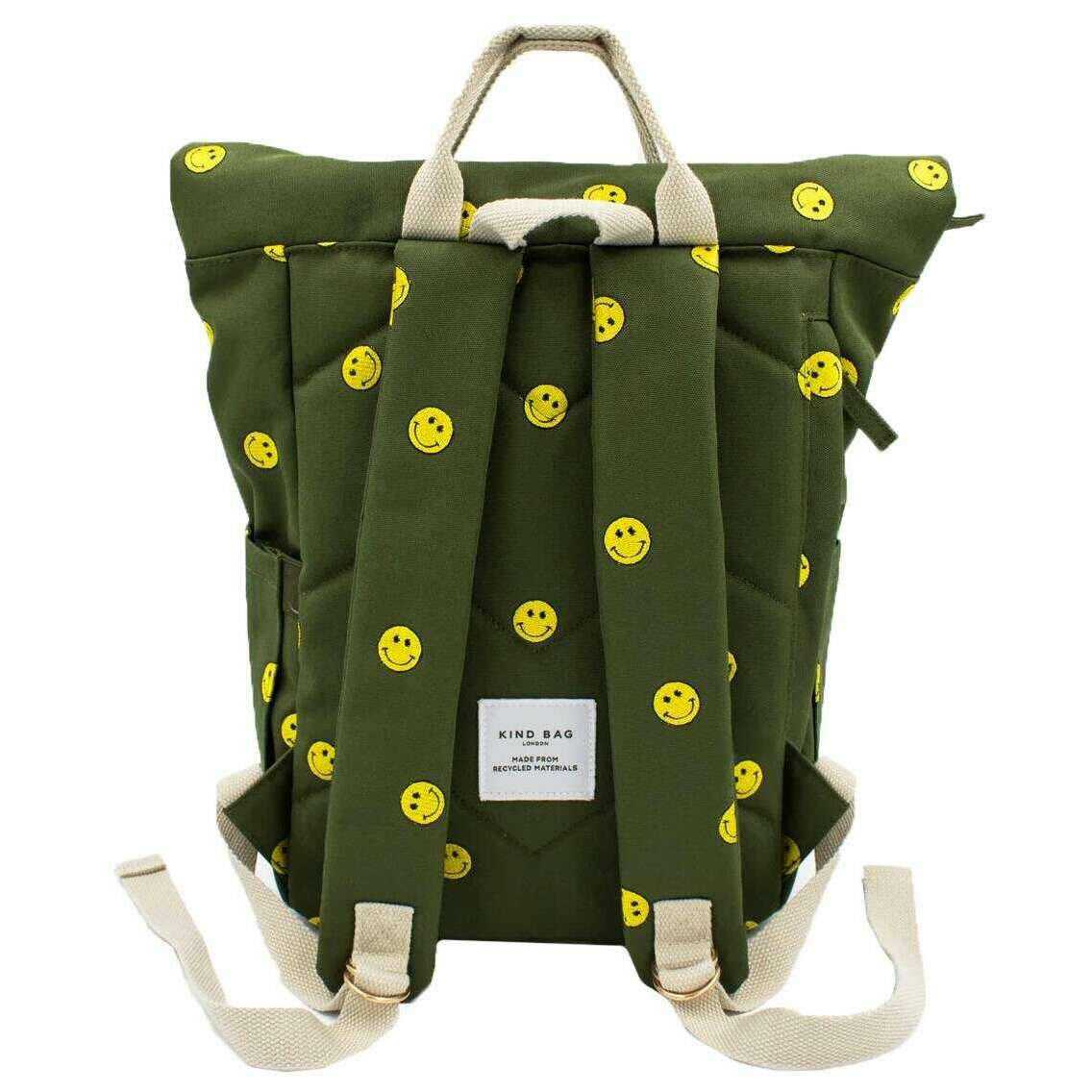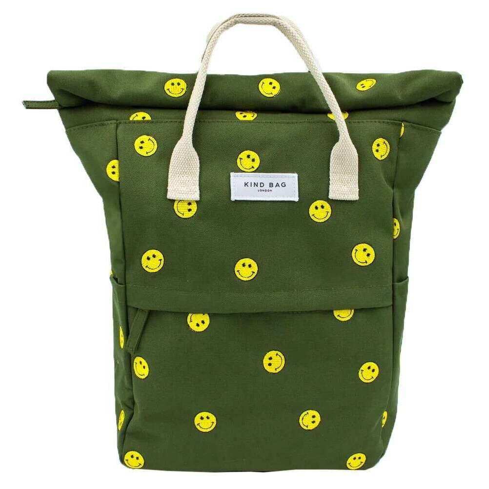 Kind Bag London Hackney Embroidered Medium Backpack - Khaki Green Smile
