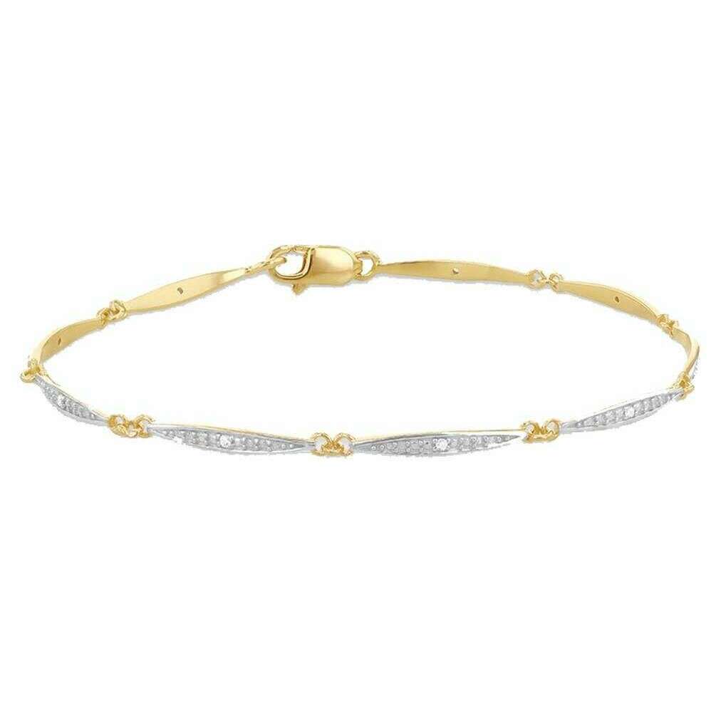 This women's 0.04ct lab created diamond bar bracelet by the brand KJ Beckett is made from sterling silver and is showcased in clear. All the bracelets come complete with packaging. The KJ Beckett 0.04ct Lab Created Diamond Bar Bracelet - Gold/Clear is a sleek and understated, elegant bar bracelet created for a timeless glow. The lab created diamonds create a subtle sparkle that elevates this bracelet without overpowering it. Designed to sit comfortably, this bracelet is perfect for everyday wear, or a thoughtful gift with meaning.