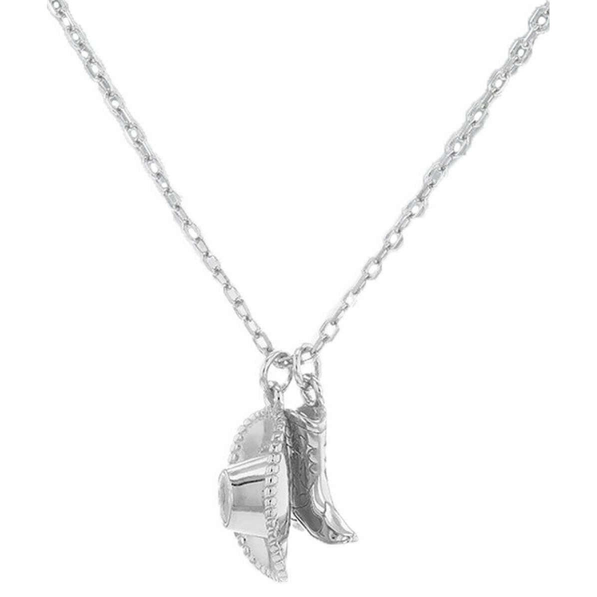 Introducing this women's cowboy boot and hat adjustable necklace by KJ Beckett, it is manufactured from sterling silver in a silver colour. All the necklaces come complete with packaging. The KJ Beckett Cowboy Boot and Hat Adjustable Necklace - Silver adds a touch of western charm to your neckline! The detailed boot and hat charms celebrate classic cowboy style, making this necklace perfect for everyday wear or as a meaningful gift for western-style lovers. Crafted in sterling silver and finished with radiant rhodium plating, this playful yet stylish design offers lasting shine and tarnish resistance.