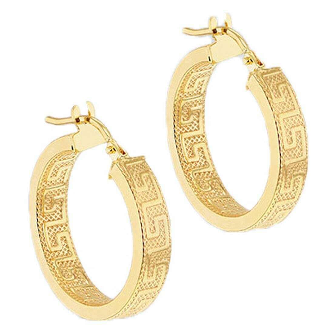 KJ Beckett Greek Pattern Hoop Earrings - Yellow Gold