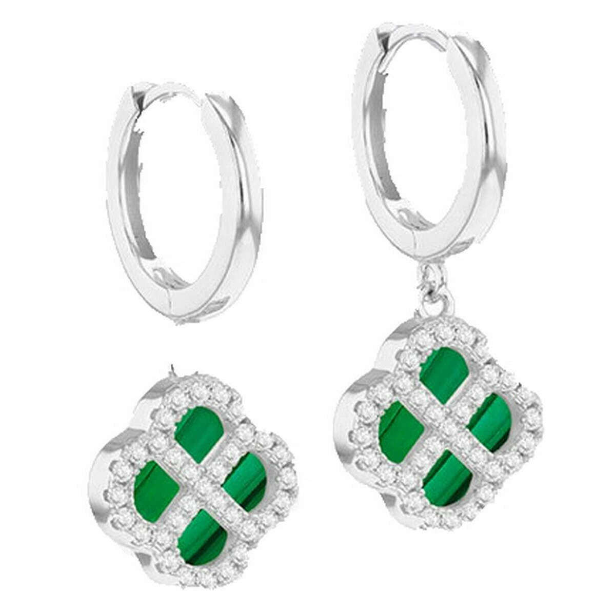 These women's malachite clover hoop earrings by the brand KJ Beckett are made from sterling silver and are showcased in green. All the earrings come complete with packaging. The KJ Beckett Malachite Clover Hoop Earrings - Silver/Green is a celebration of charm and elegance! These unique sterling silver hoop earrings feature an 11mm malachite clover charm paired with a sparkling 1.1mm cubic zirconia-accented hoop, all crafted from sterling silver and finished with sleek rhodium plating for lasting shine and tarnish resistance. Lightweight yet eye-catching, these hoops are perfect for everyday wear and make a thoughtful and stylish gift.