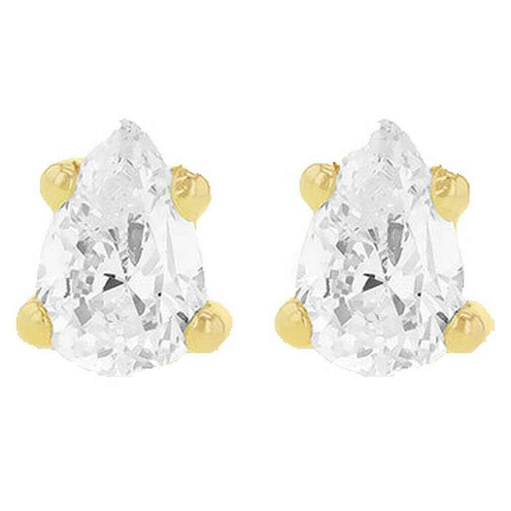 KJ Beckett Pear Stud Earrings - Yellow Gold/Clear
