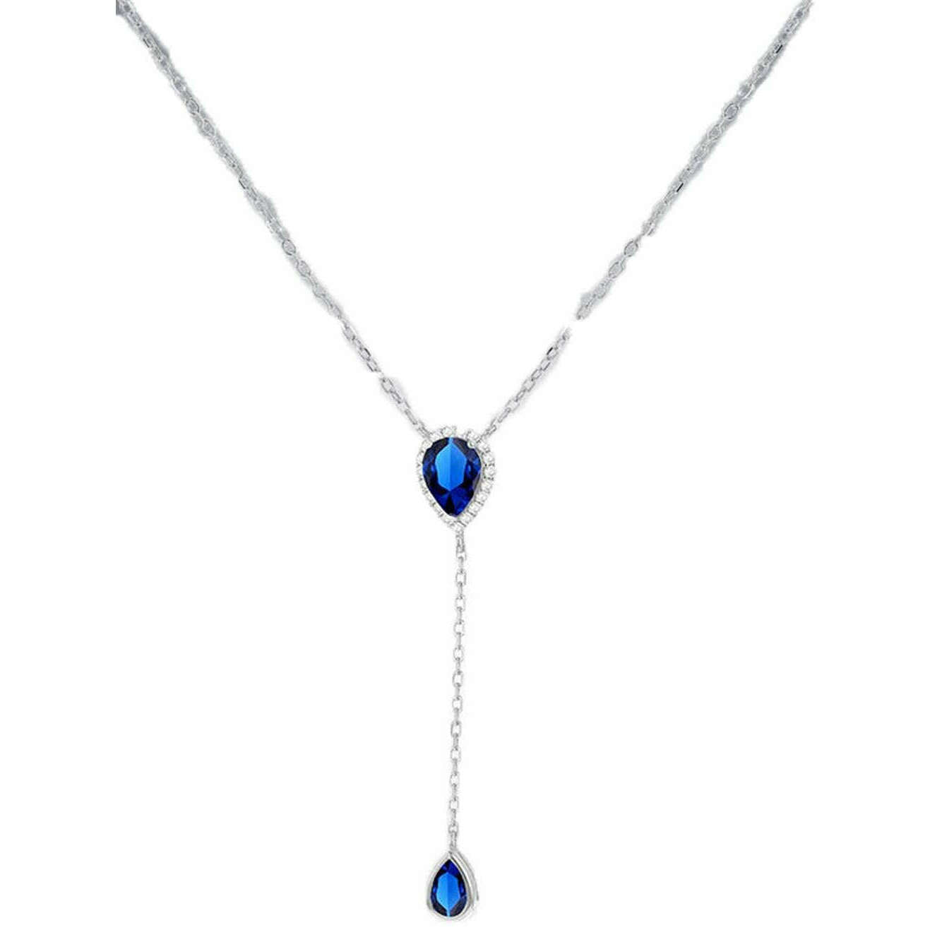 Brought to you by the brand KJ Beckett, this silver/blue women's teardrop adjustable lariat necklace is made from sterling silver. All the necklaces come complete with packaging. The KJ Beckett Teardrop Adjustable Lariat Necklace - Silver/Blue adds a touch of elegance to any neckline! Featuring a sparkling teardrop pendant set with dazzling blue and white cubic zirconia, this necklace is perfect for day-to-night wear and is a striking choice for special occasions or as a thoughtful gift.